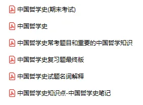 今天分享的资料是「中国哲学史」电子版+学习笔记+知识点总结+期末考试重点+复习资料+习题集及答案+名词解释+历年真题试卷及答案+题库及答案+复习重点+思考题及参考答案+公式总结+考试重点基础题+知识总结+高清PDF可打印+免费分享!