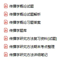 今天分享的资料是「0467-传播研究方法」电子版+学习笔记+知识点总结+期末考试重点+复习资料+习题集及答案+名词解释+历年真题试卷及答案+题库及答案+复习重点+思考题及参考答案+公式总结+考试重点基础题+知识总结+高清PDF可打印+免费分享!