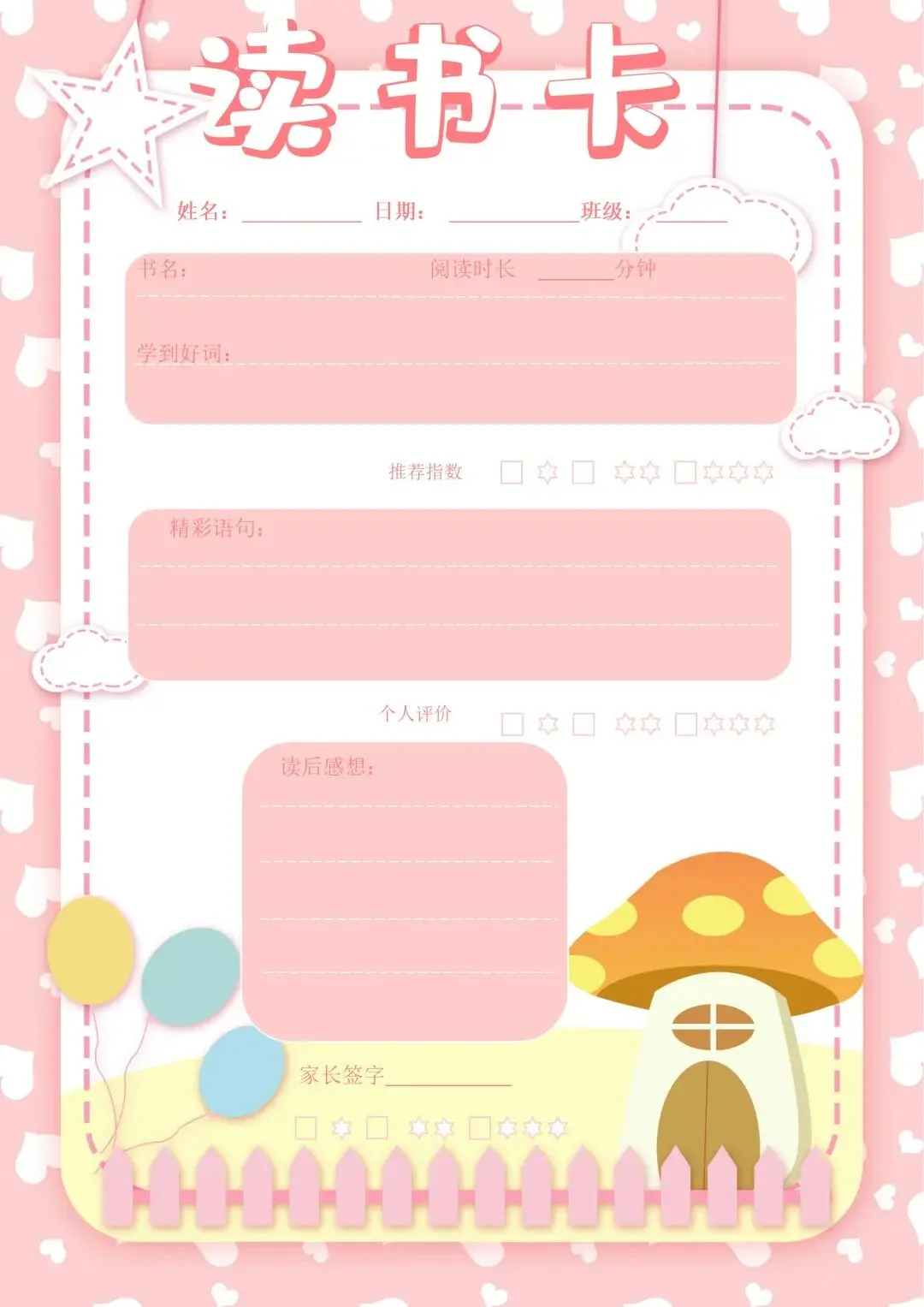 40套阅读记录卡模板分享(可编辑打印)