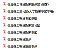 今天分享的资料是「0474-信息安全概论」电子版+学习笔记+知识点总结+期末考试重点+复习资料+习题集及答案+名词解释+历年真题试卷及答案+题库及答案+复习重点+思考题及参考答案+公式总结+考试重点基础题+知识总结+高清PDF可打印+免费分享!