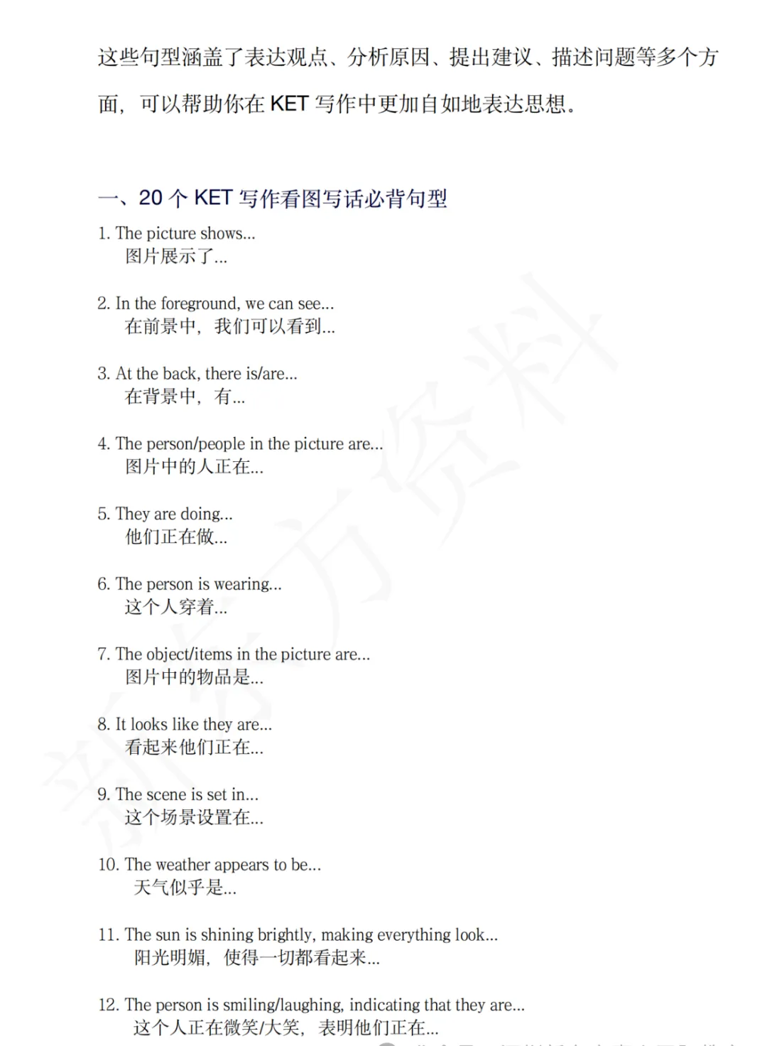 2️⃣ 20 篇 KET 写作专项范文(含引导式写作 + 看图写作,参考高分思路)