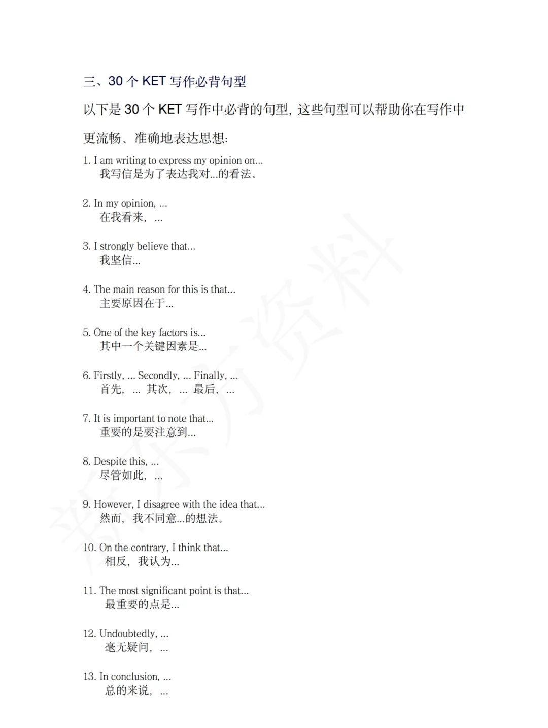 1️⃣ 70 个 KET 写作必备句型(邮件、便签、看图写作通用,直接套用提分快)
