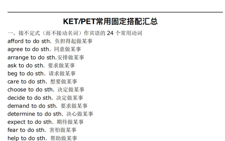 📚 KET/PET 常用固定搭配汇总