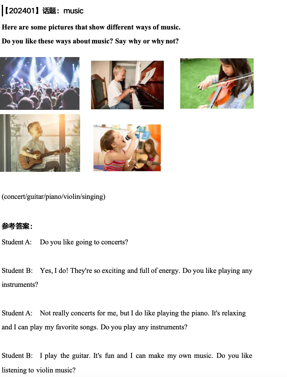 2️⃣ 24年郑州KET 口语真题机经(口语话题+卓越示范,提前模拟不怯场)