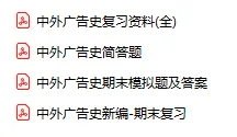 今天分享的资料是「0415-中外广告史新编」电子版+学习笔记+知识点总结+期末考试重点+复习资料+习题集及答案+名词解释+历年真题试卷及答案+题库及答案+复习重点+思考题及参考答案+公式总结+考试重点基础题+知识总结+高清PDF可打印+免费分享!