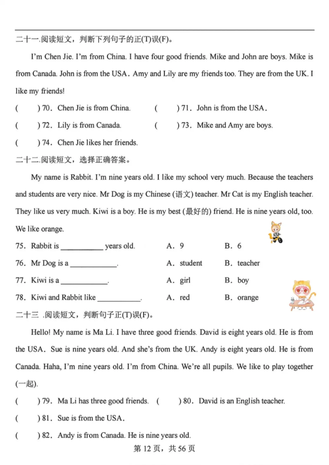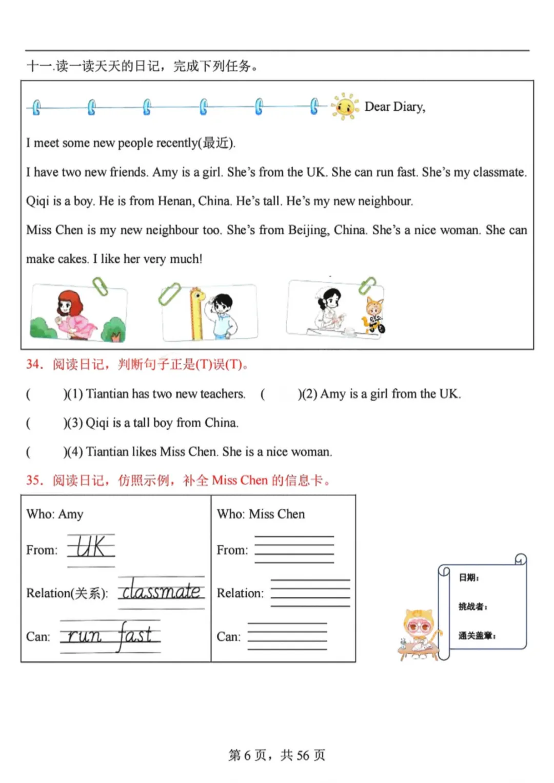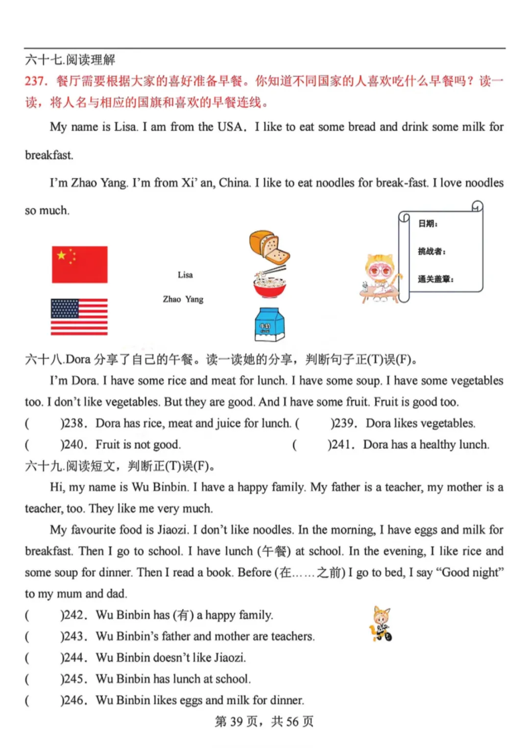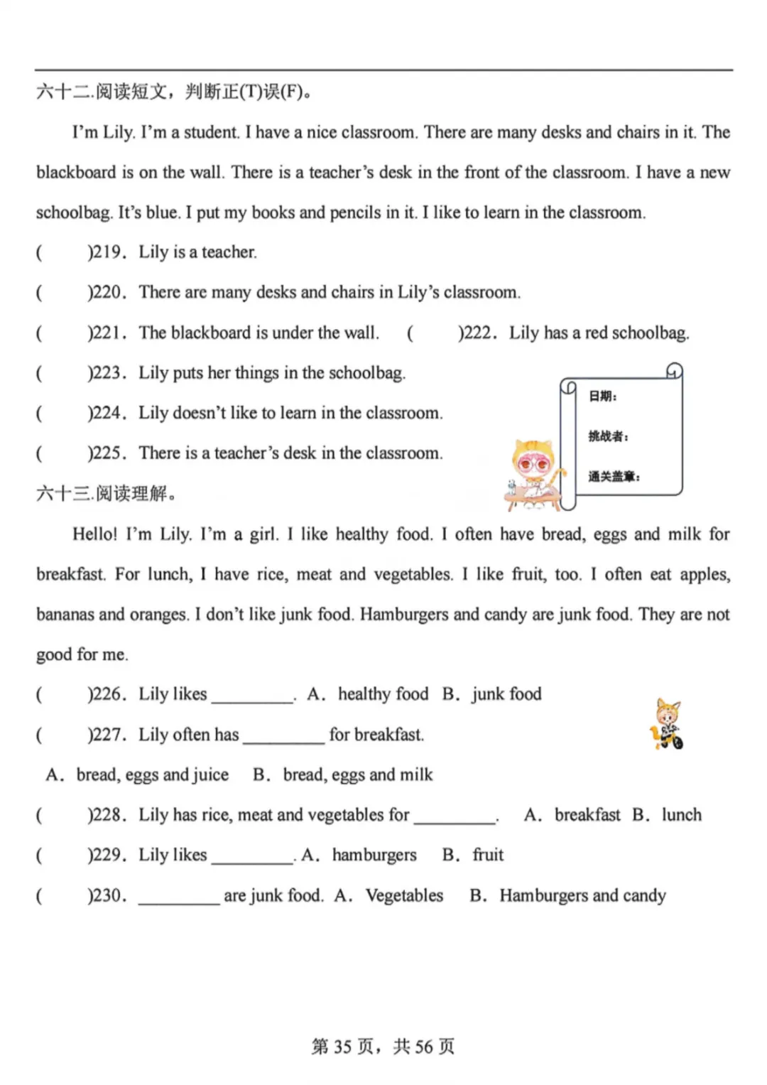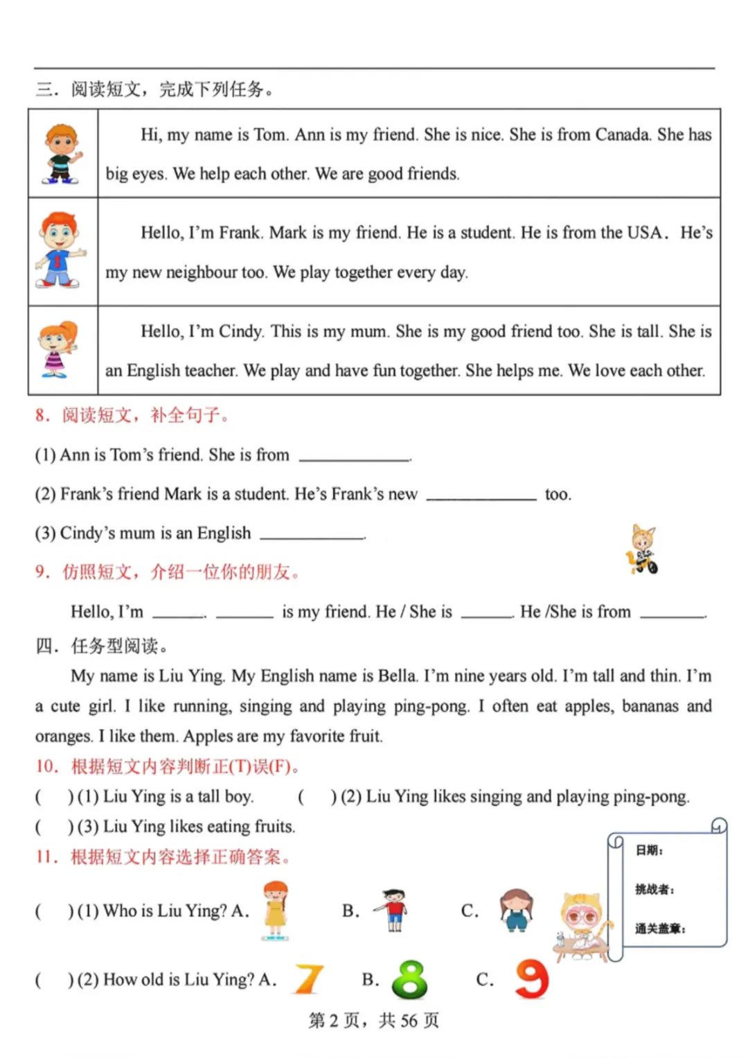 26春三年级下册英语人教PEP版《阅读理解专项训练91篇》(附答案)完整高清电子版可打印