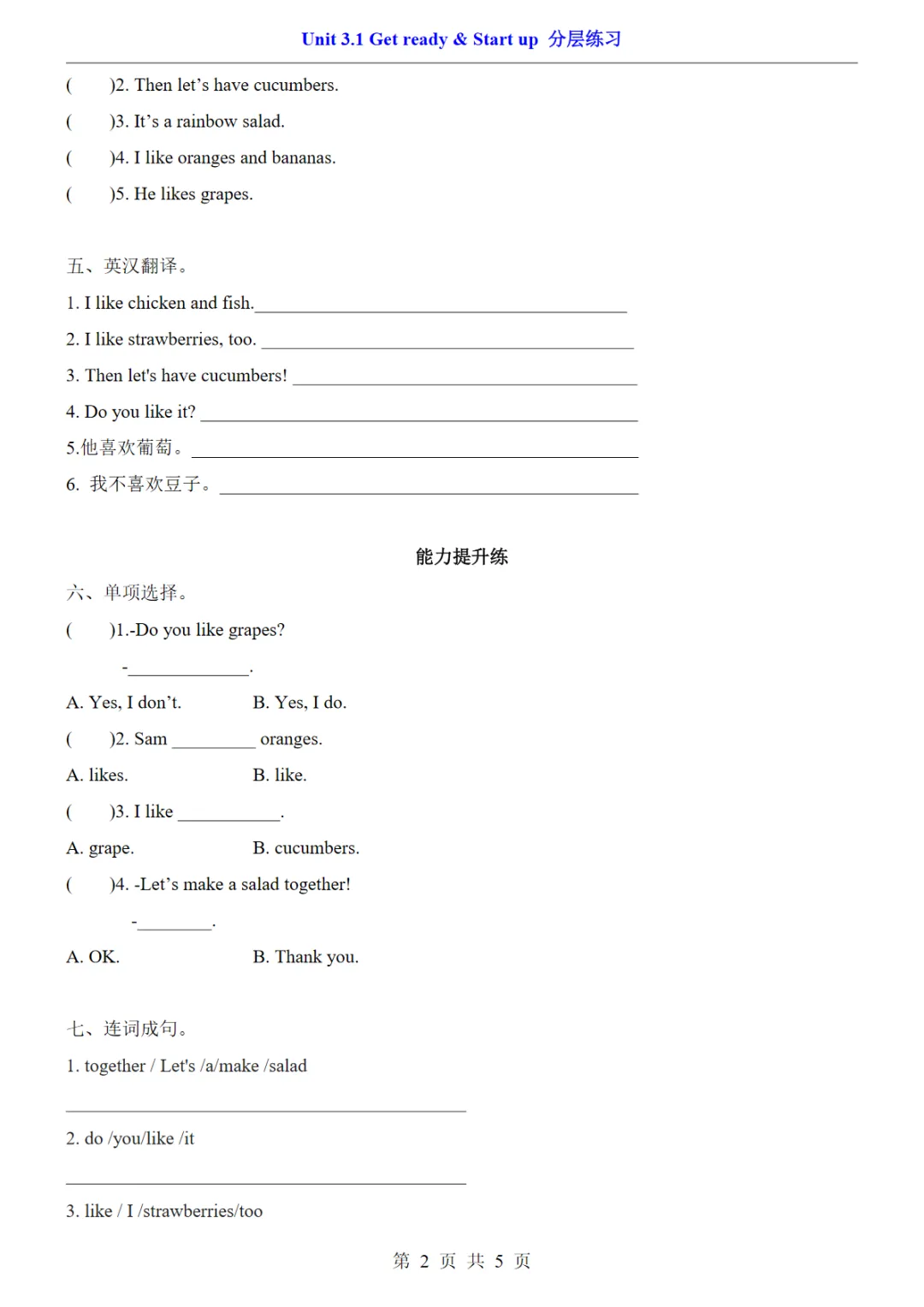 【免费下载】三年级(下)英语 Unit 3.1 Get ready & Start up分层练习《外研版(三起)》,PDF电子版,共5页,可打印