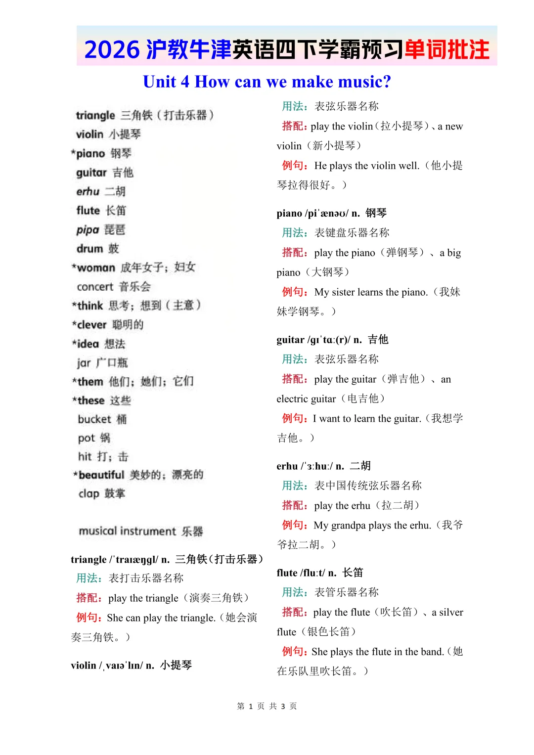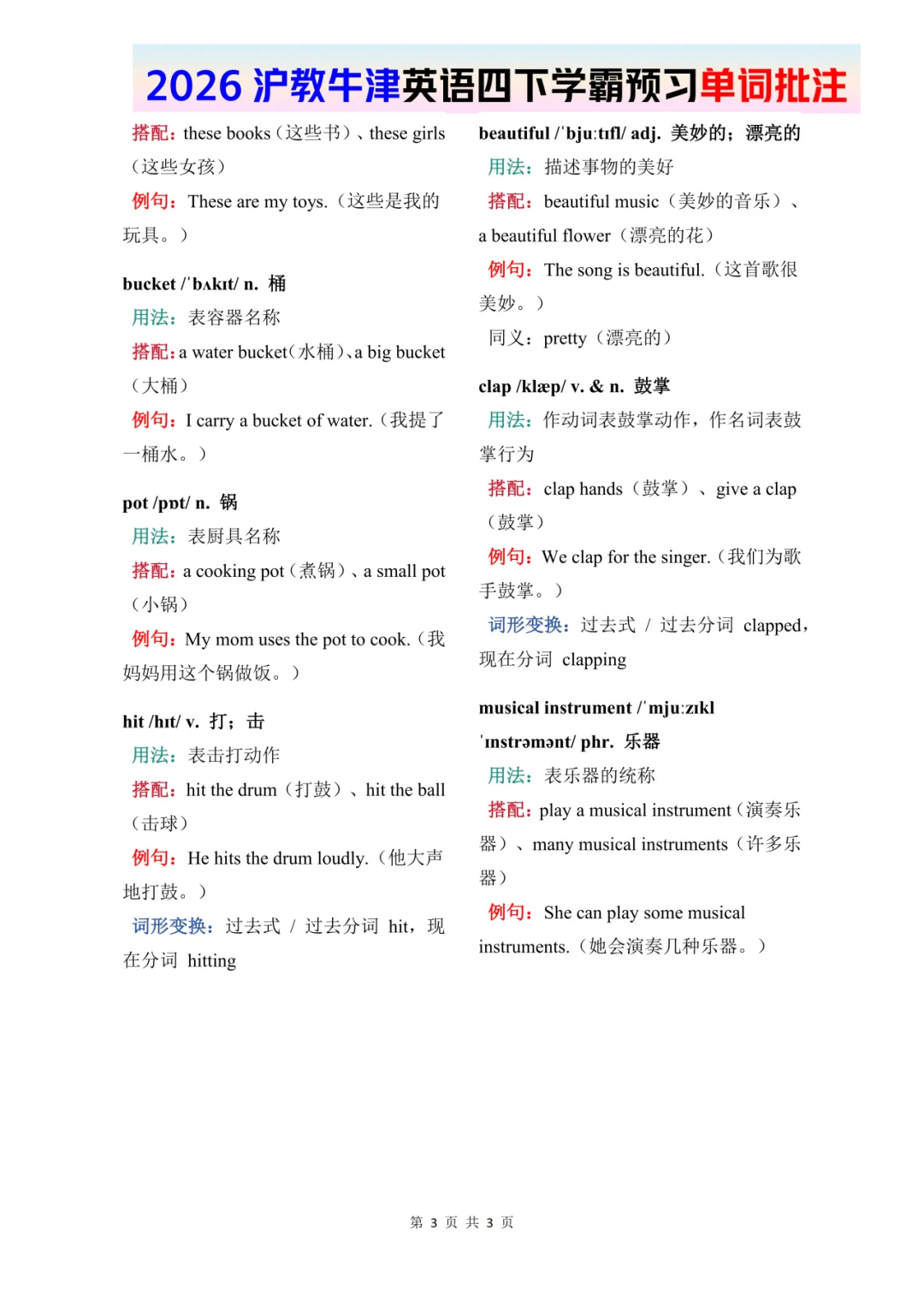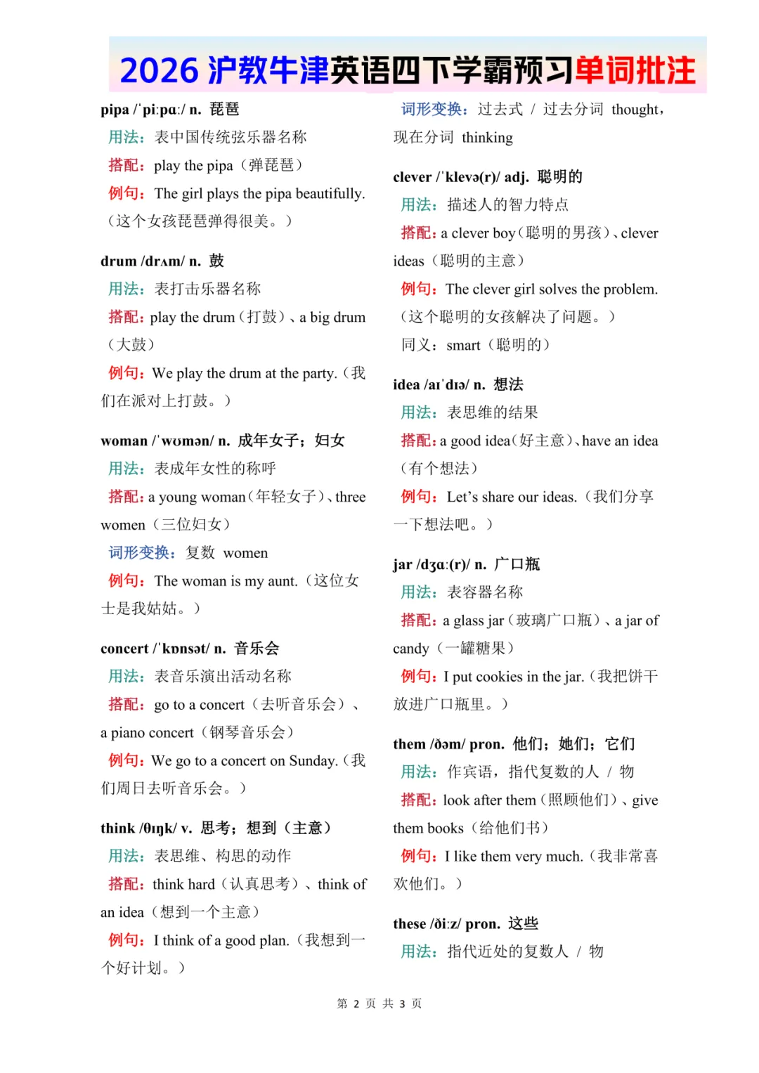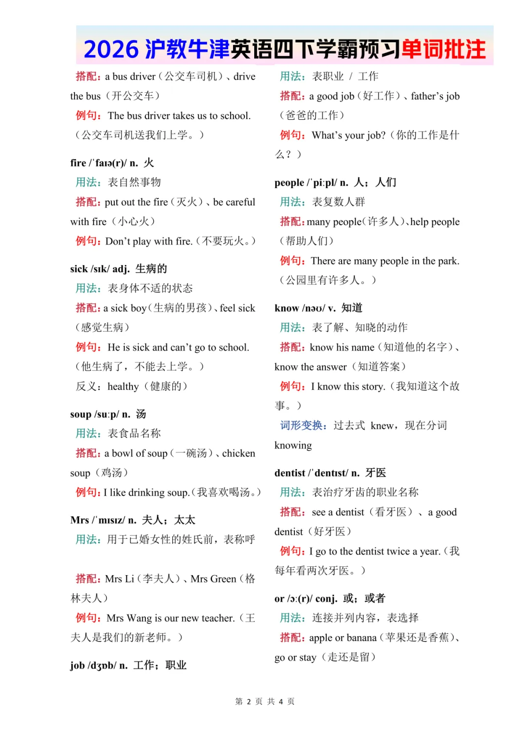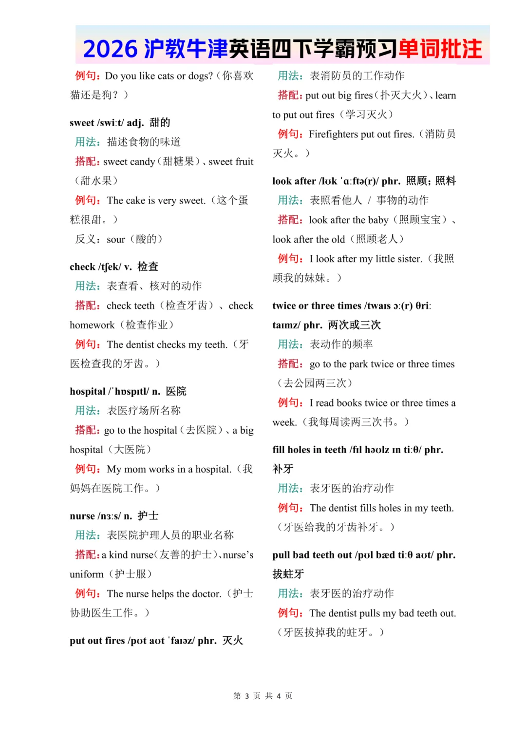 26春四年级下册英语《牛津版–U3-U4单词批注》——高清完整文末领取