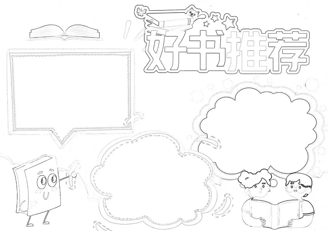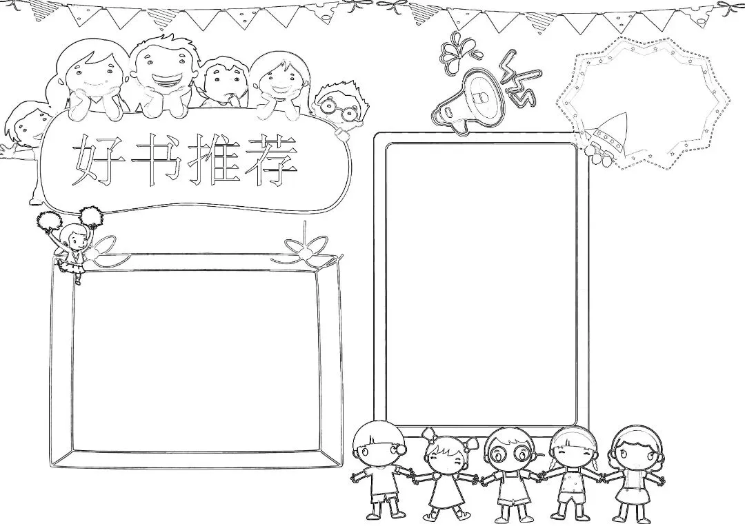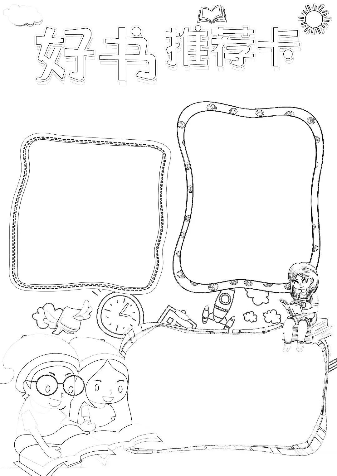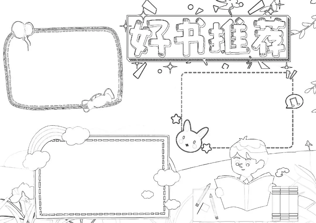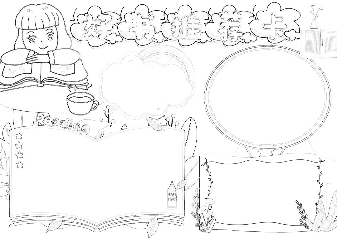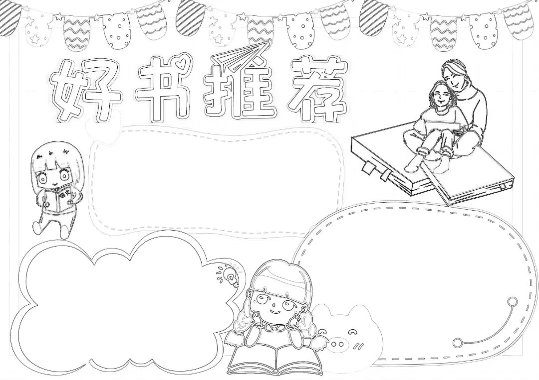 《好书推荐手抄报47套》高清线稿电子版可打印