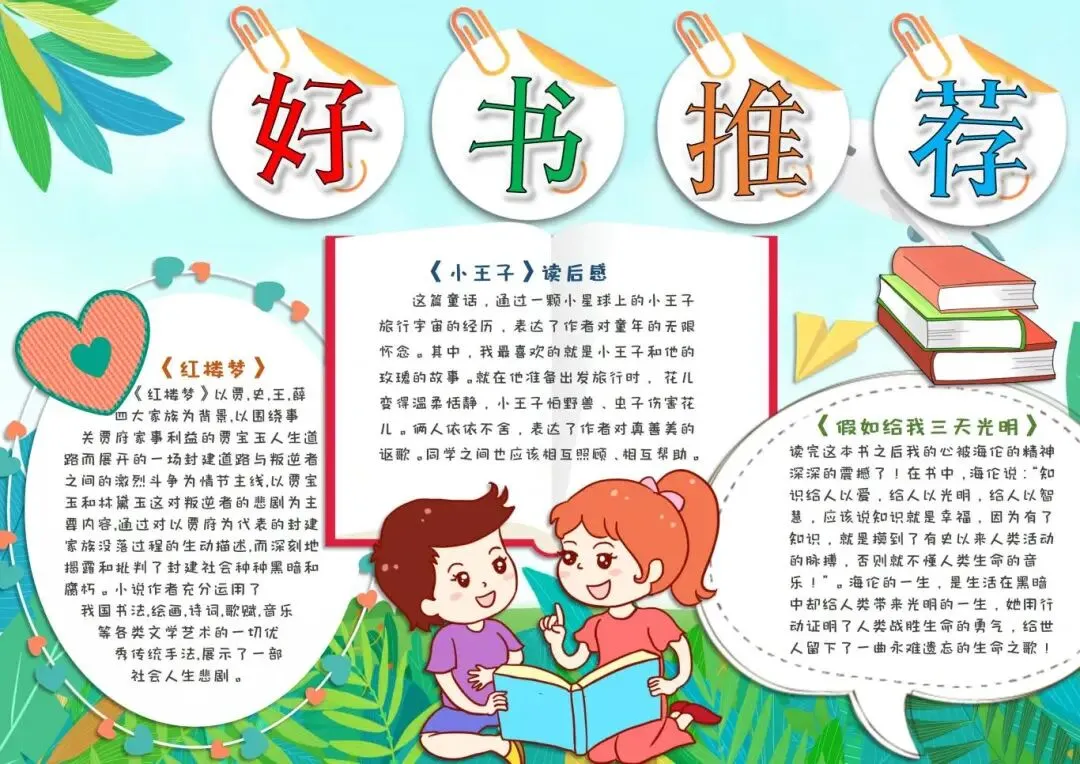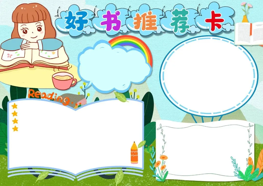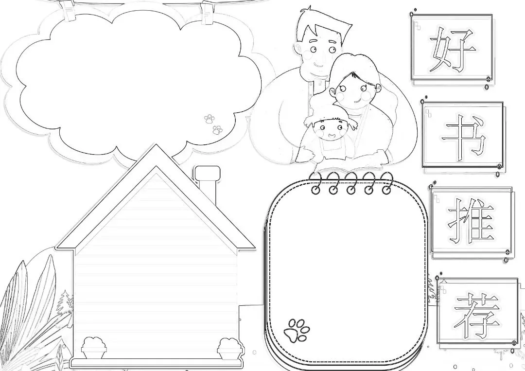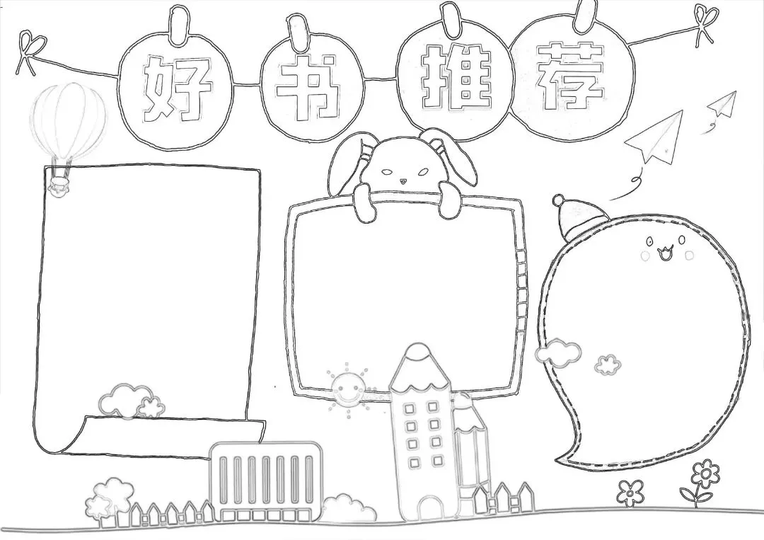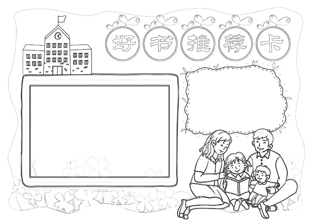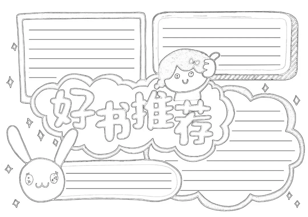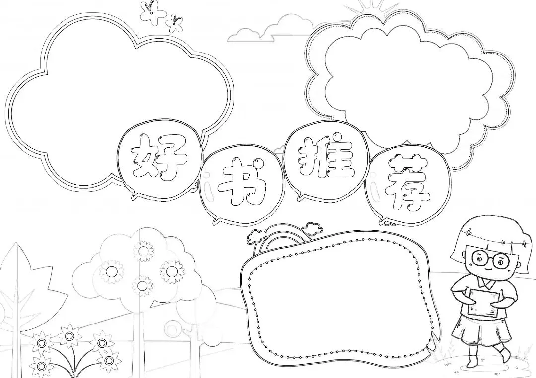 《好书推荐手抄报47套》高清线稿电子版可打印