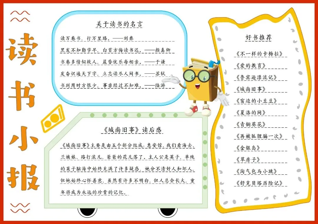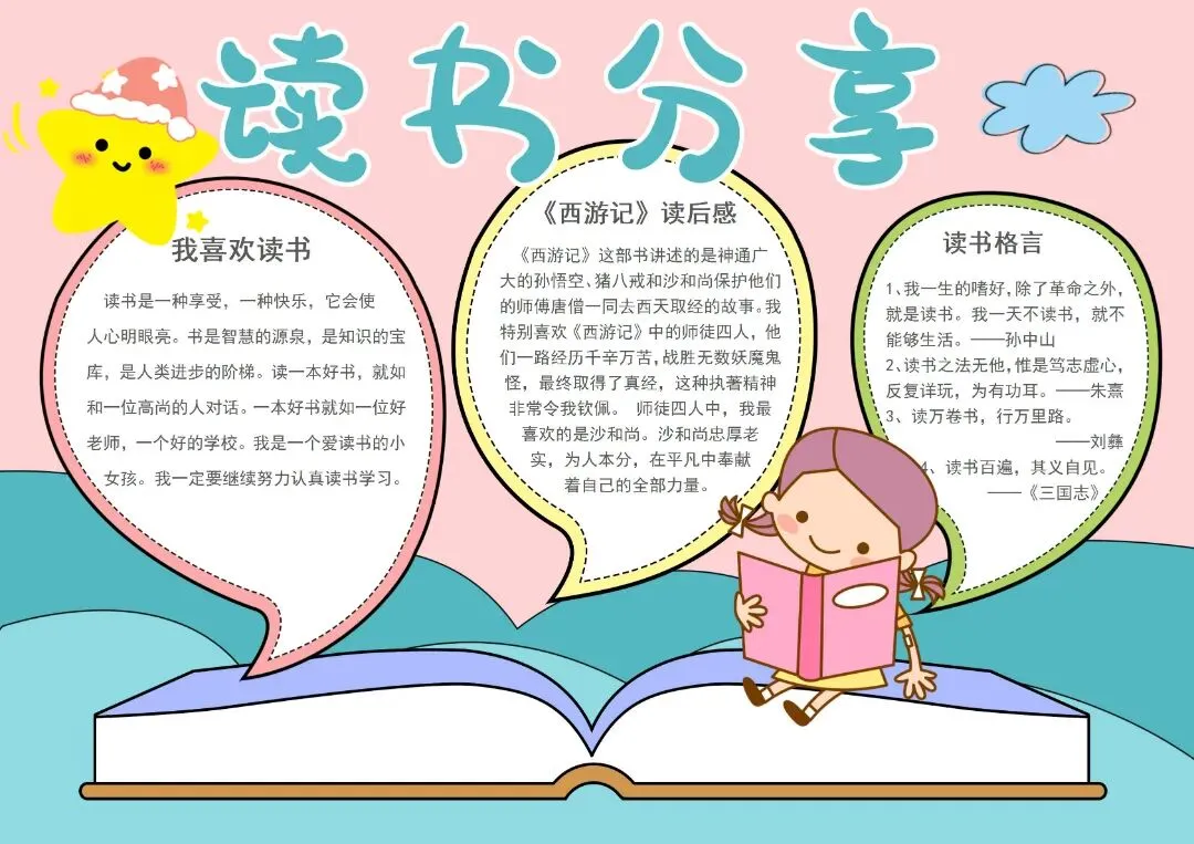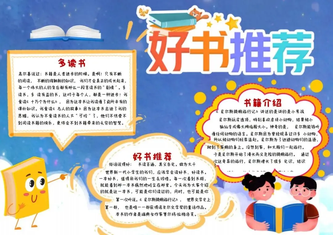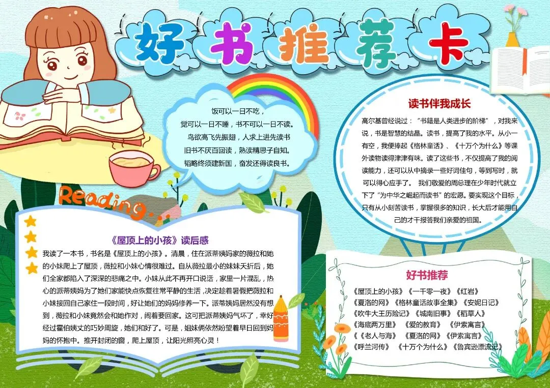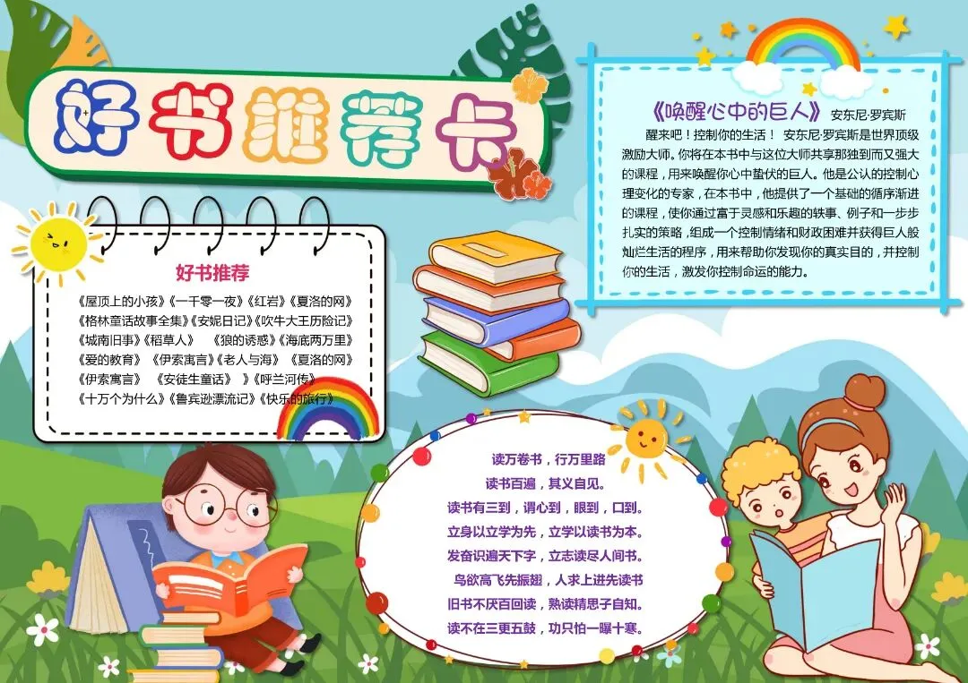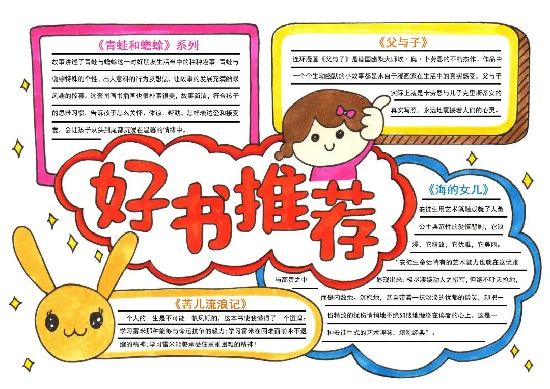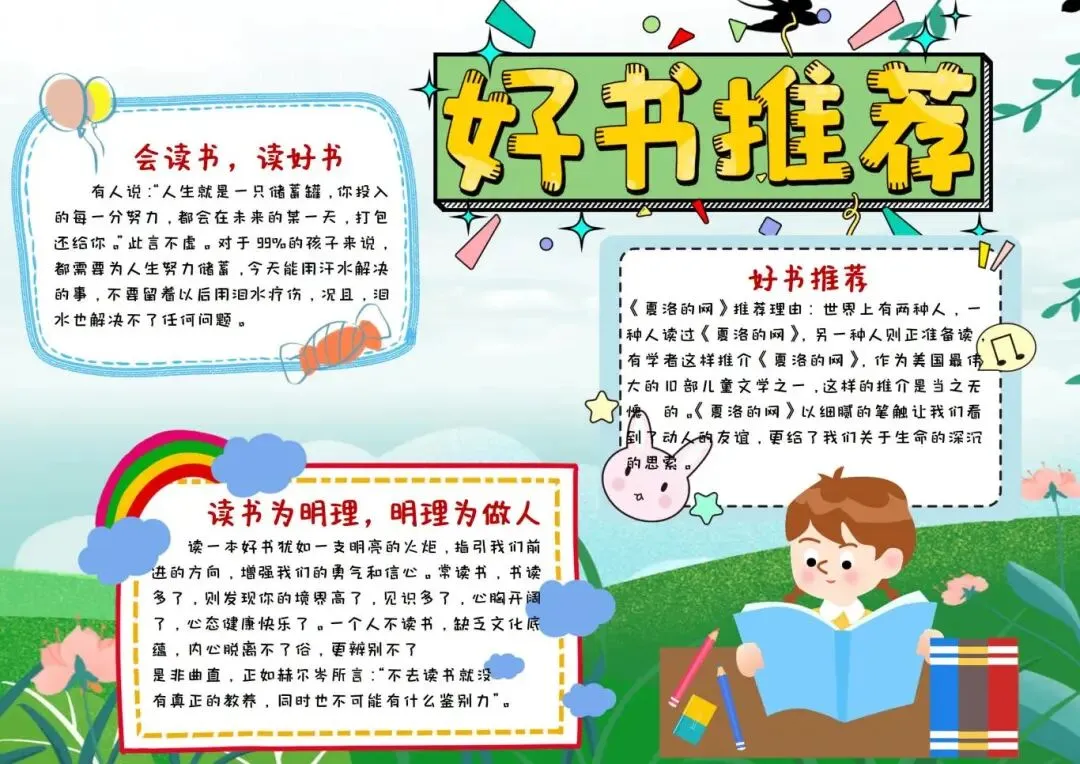 《好书推荐手抄报47套》高清线稿电子版可打印