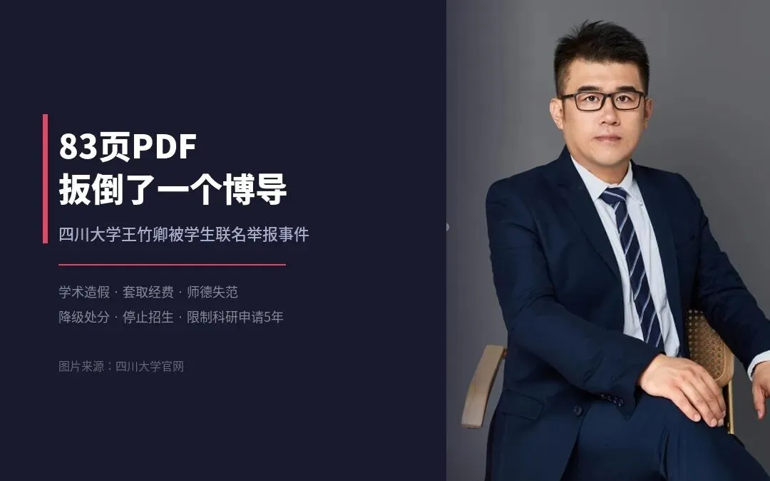 具体,还要从上个月的事情说起:王竹卿课题组的8名硕博研究生,花了三个月,收集97段录音、236张凭证,整理成一份83页的PDF,指控导师学术造假、套取经费、辱骂学生等。今年1月16日提交举报材料,2月初在网上传开,舆论迅速发酵,2月6日川大启动调查,八天后出了上述结果。