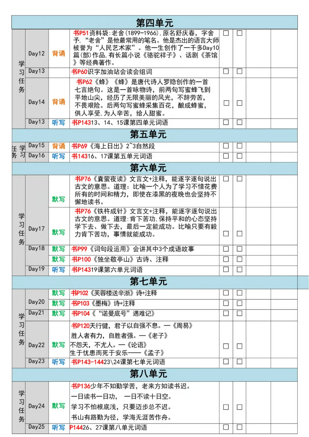 【免费下载】四年级下语文期末复习重点知识清单,PDF电子版,可打印,共7页