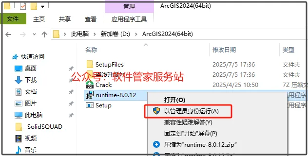 第三步:打开解压的文件夹,选中【runtime-8.0.12】右击【以管理员身份运行】。