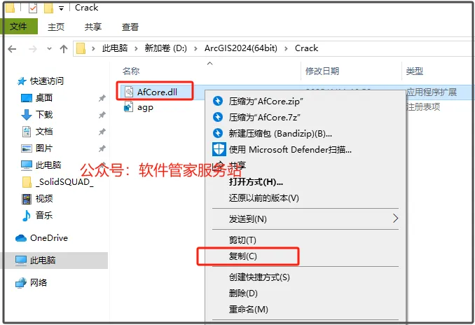 第二十四步:返回【Crack】文件夹,复制【AfCore.dll】文件。