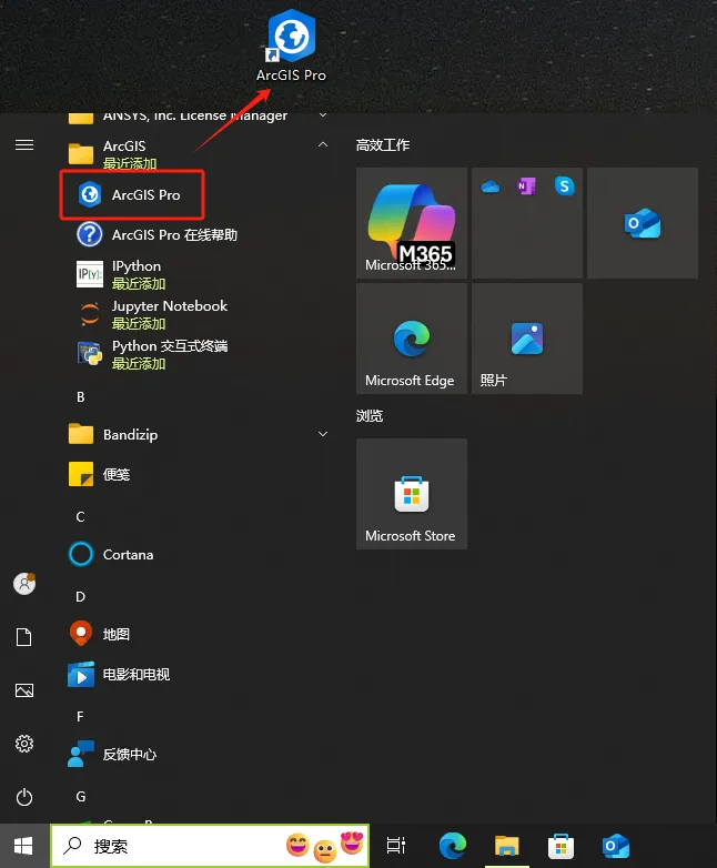 第二十五步:依次点开始,找到【ArcGIS Pro】并将其拖到电脑桌面。