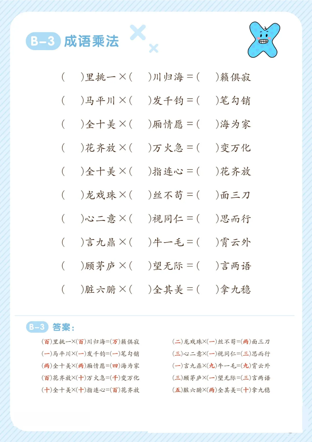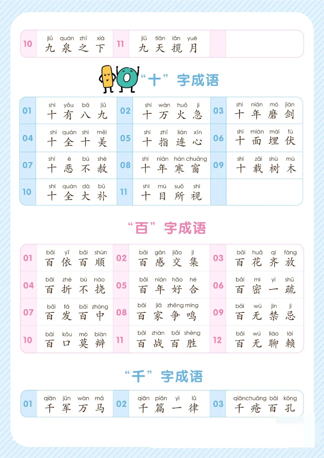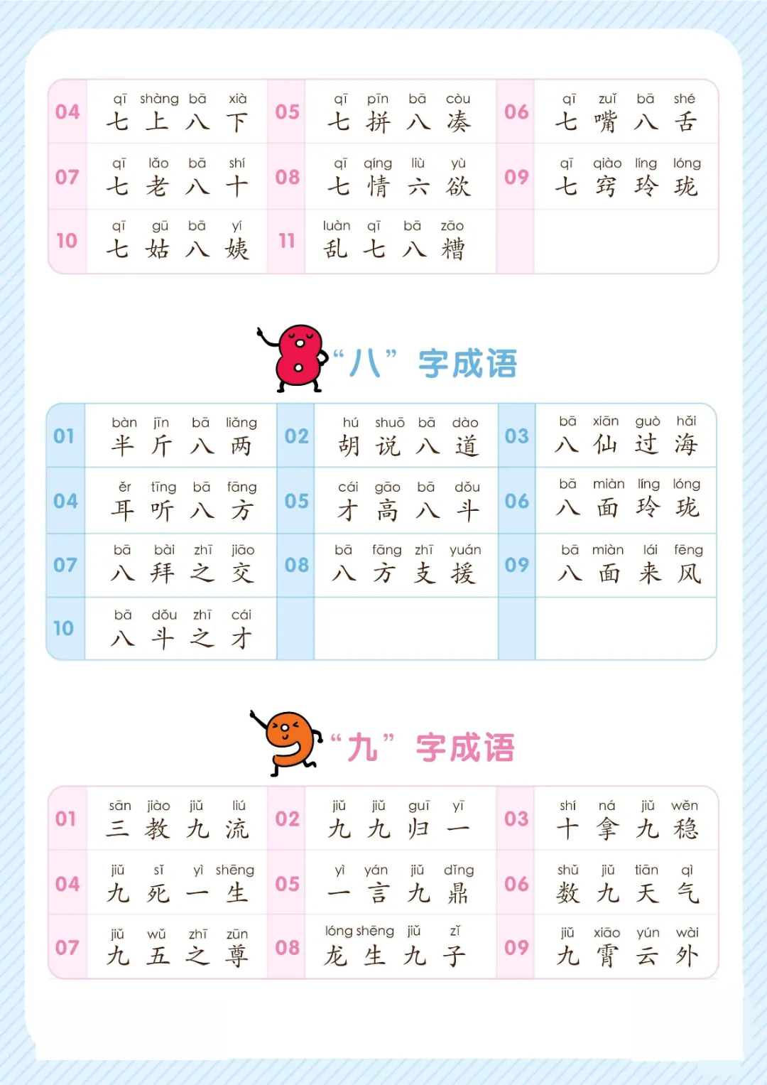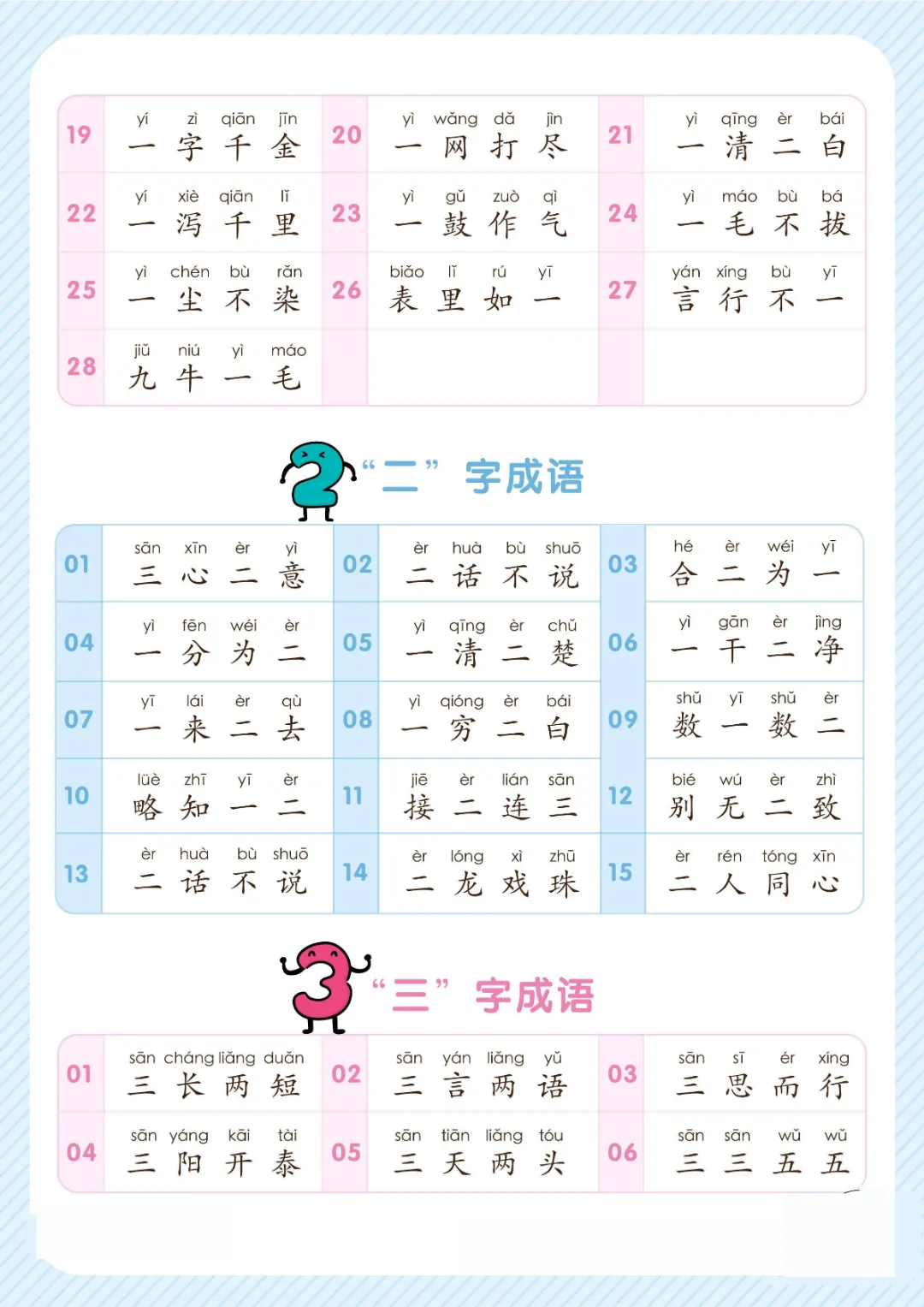 幼小衔接关于数字的成语大全|电子版可打印