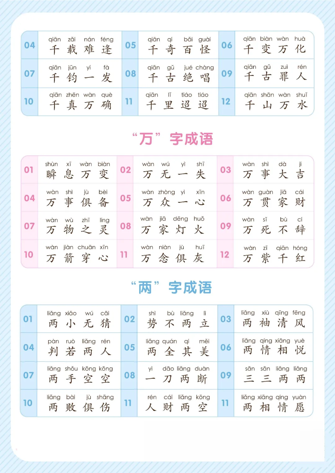 幼小衔接关于数字的成语大全(电子版可打印)