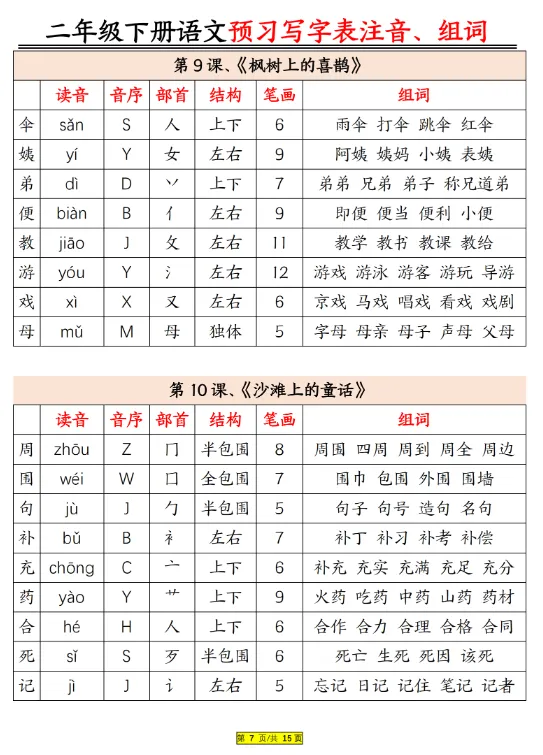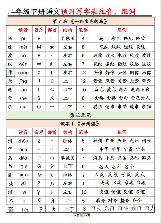 本站文章均为手工撰写未经允许谢绝转载:夜雨聆风 » 新二年级下册语文预习生字注音组词,电子版可打印