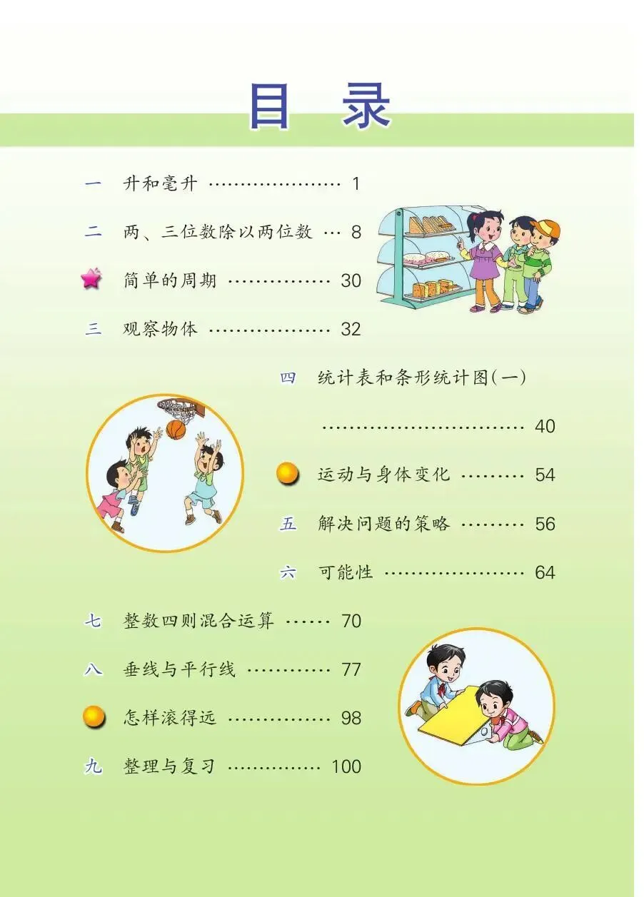 以下为部分内容展示,下载完整苏教版小学四年级数学上册电子版教材,本教材是2026年春季最新版,请到页尾【免费资料下载】。