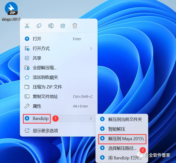 1、下载Maya 2015软件安装包到电脑上,右键选择【解压到Maya 2015\】
