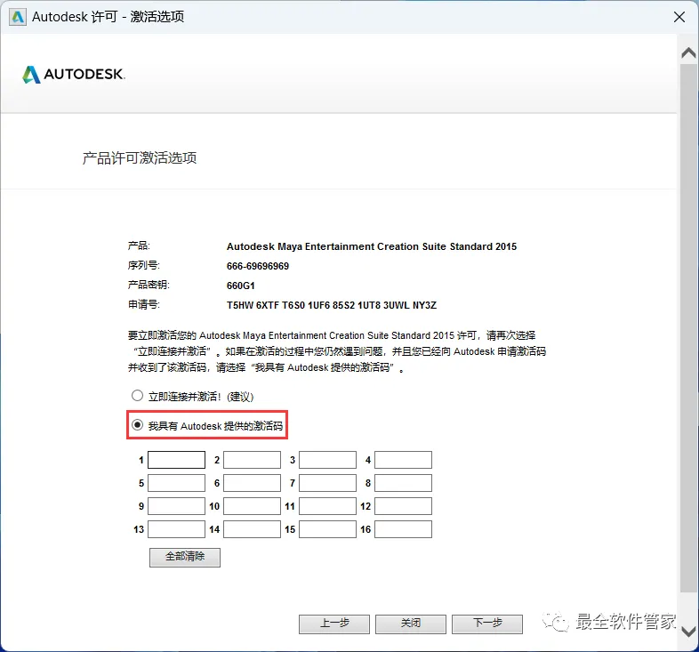 16、点击【我具有Autodesk提供的激活码】