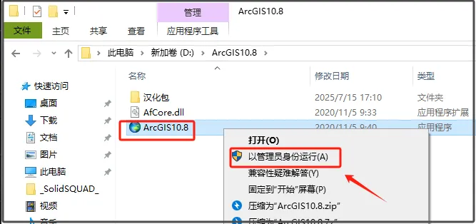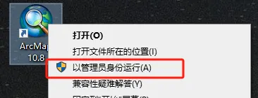 第三步:选中【ArcGIS10.8】右击【以管理员身份运行】。