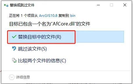 第二十步:选择【替换目标中的文件】。