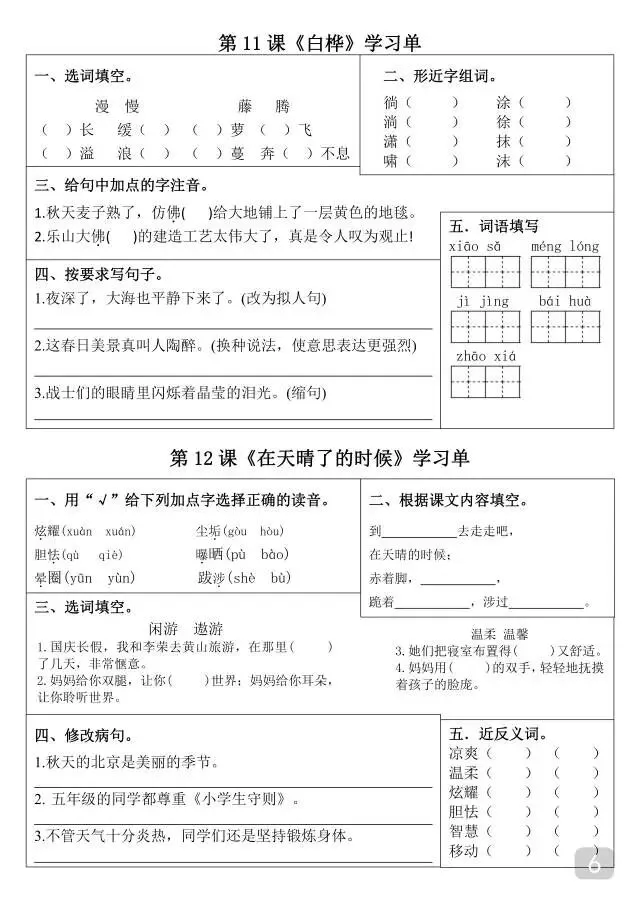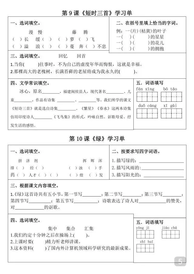 这份部编版四年级下册语文1-28课学习单超实用!紧扣课本每篇课文,量身设计字音字形、词语练习、句式训练、课文感知、拓展积累等阶梯式任务,字词句段知识点全覆盖,兼顾基础夯实与能力提升。编排贴合四年级学习特点,题型丰富、重点突出,既是课前预习的好帮手,也是课后巩固、同步练习的优质资料,助力孩子吃透课堂知识,稳步提升语文素养!需要的家长抓紧打印出来吧。