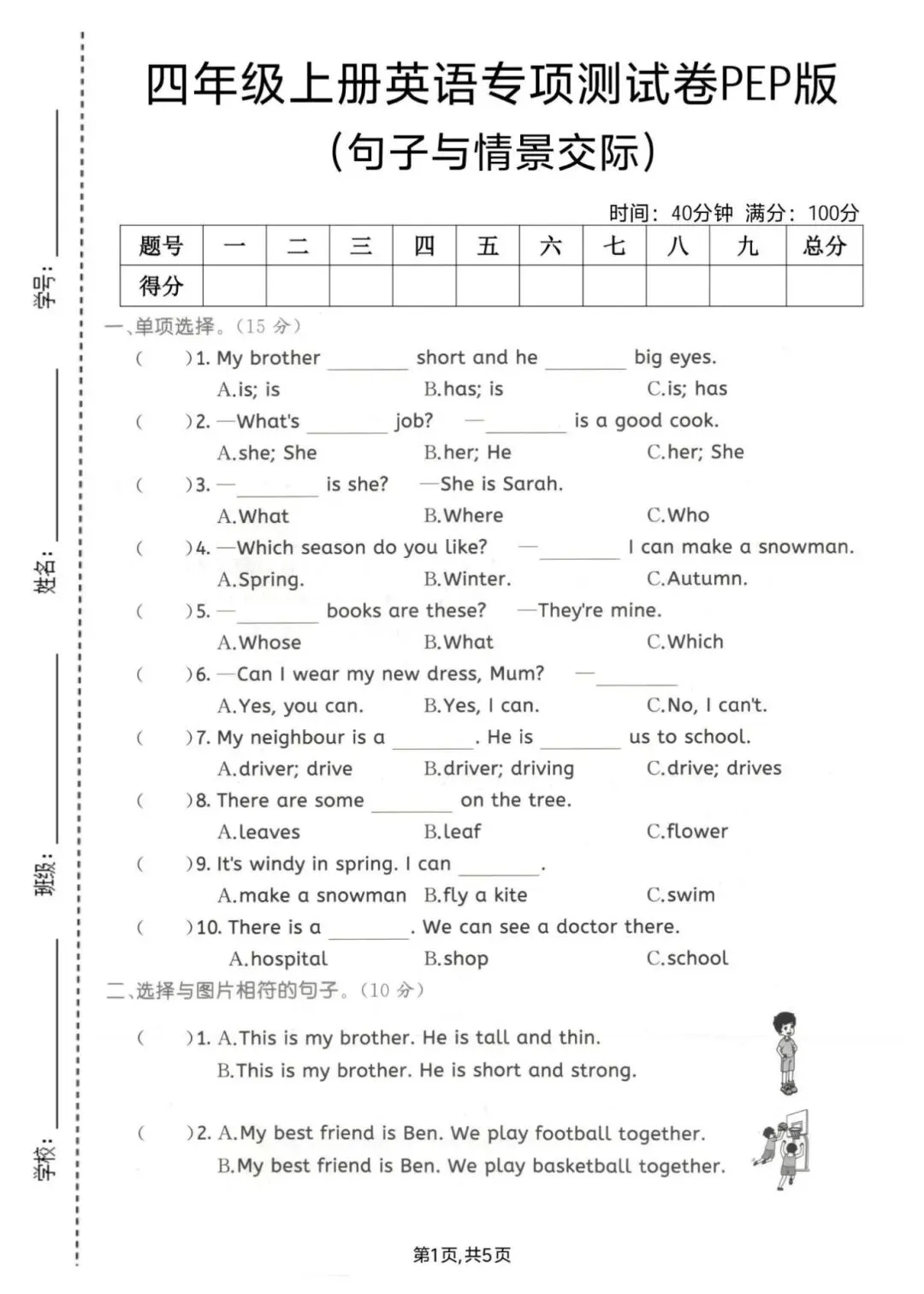 2025秋四年级上册英语《句子与情景交际测试卷》,做英语习题有助于巩固所学知识,并找出需要改进的地方。需要的家长抓紧领取一份打印给孩子练一练吧!