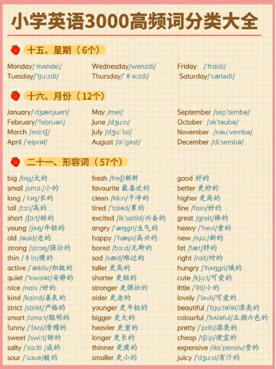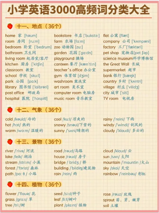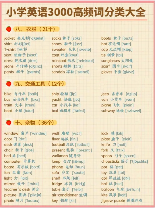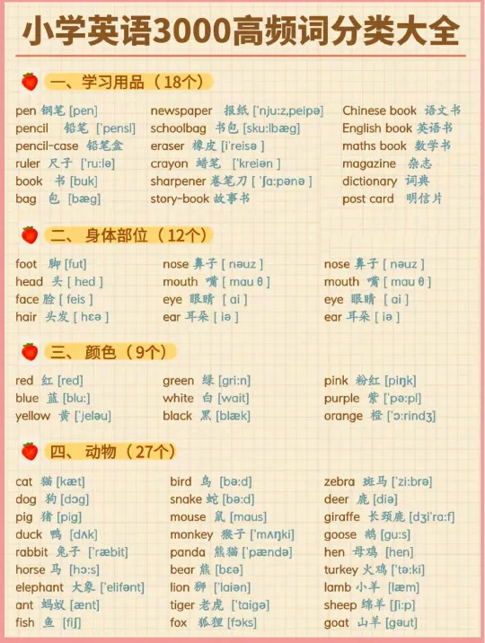 《小学英语3000高频词分类大全》电子版PDF,附链接免费下载打印