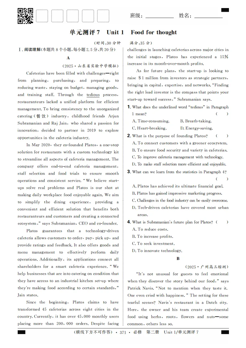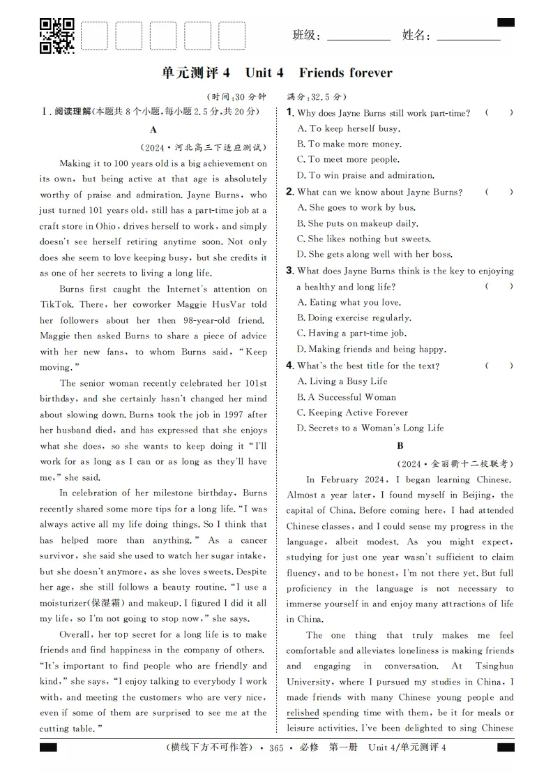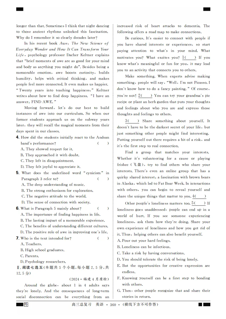 2024版高考试题调研月刊系列英语第4辑高考超重点4阅读理解(共116页pdf版)