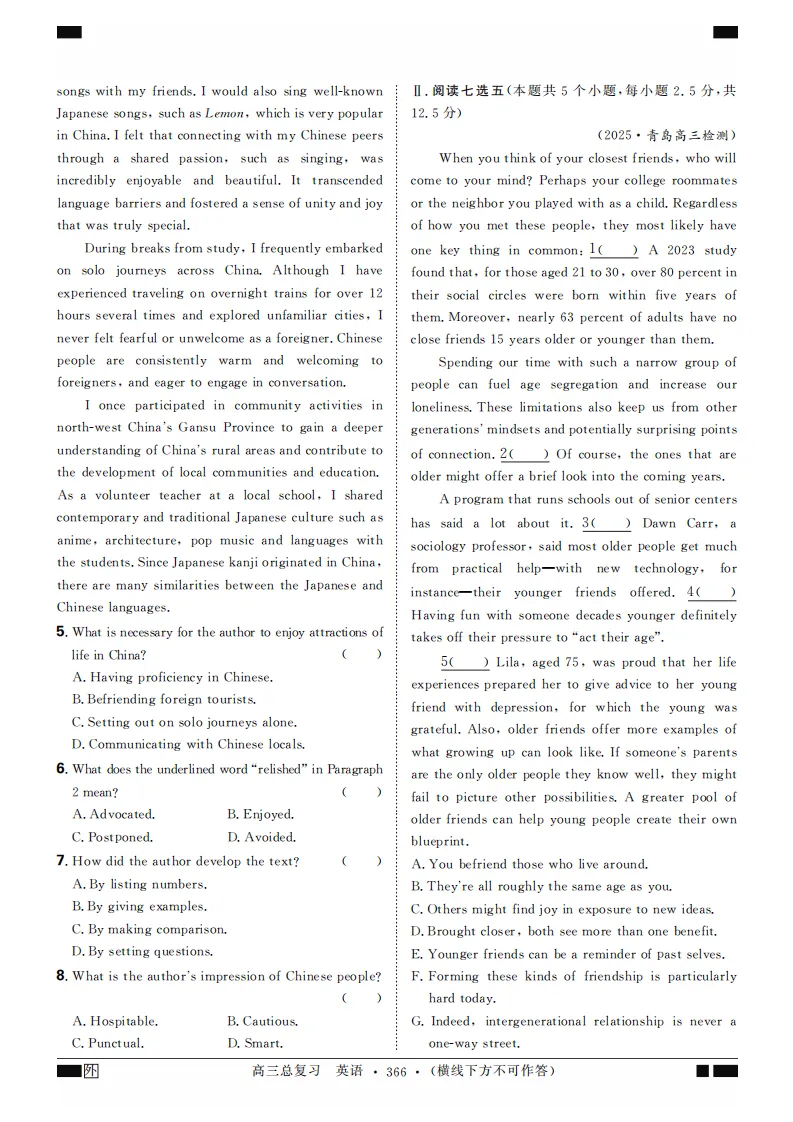 2024版高考英语二轮七选五题型突破合订本(共100页word版)