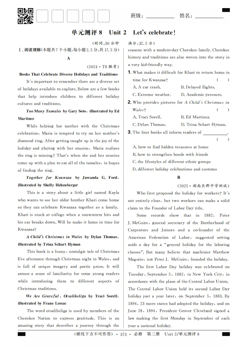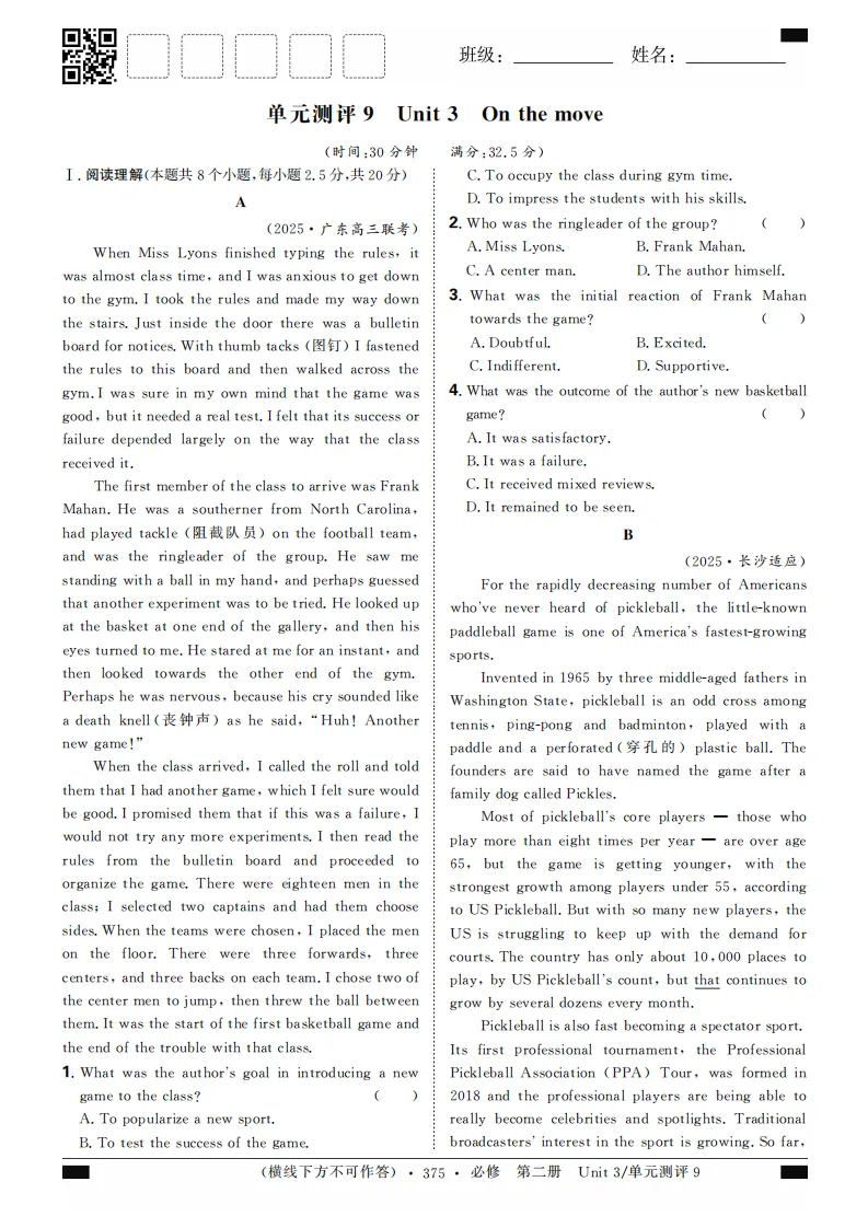 2023-2024版北师大2019版英语选择性必修第二册分层练合订本(共74页word版)