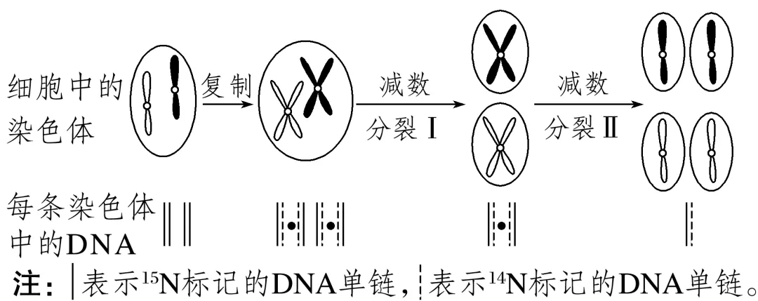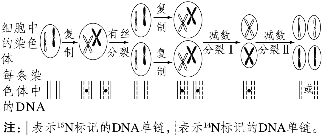 用15N标记细胞的DNA分子,然后将其放到含14N的培养液中进行一次有丝分裂,再继续在含14N的培养液中进行正常减数分裂,情况如图所示(以一对同源染色体为例):