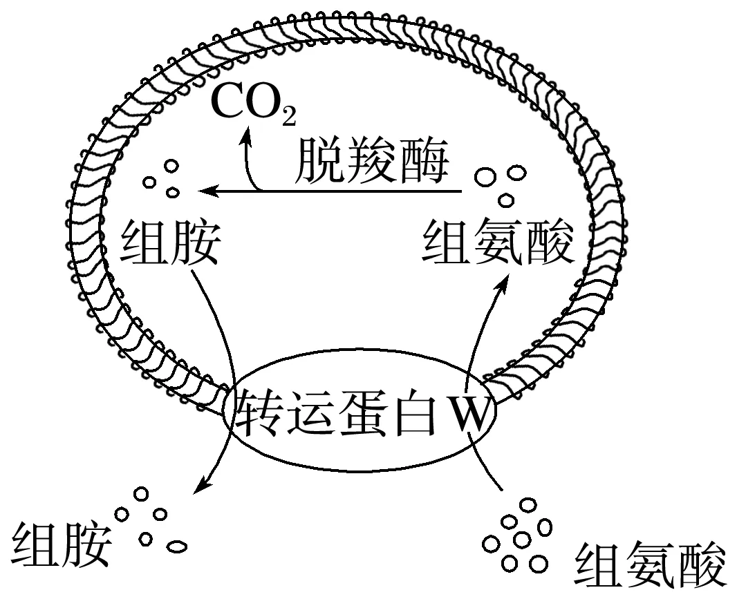2.(2025·四川,4)某细菌能将组氨酸脱羧生成组胺和CO2,相关物质的跨膜运输过程如图。下列叙述正确的是( )