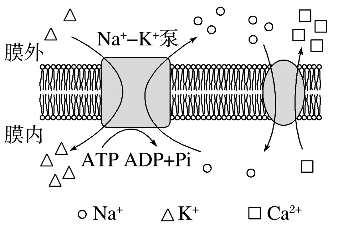 (1)离子泵属于复合蛋白,既具有酶的催化功能(催化ATP水解),又具有运输离子的功能,通过主动运输的方式对特定离子进行跨膜运输,如图所示钠钾泵: