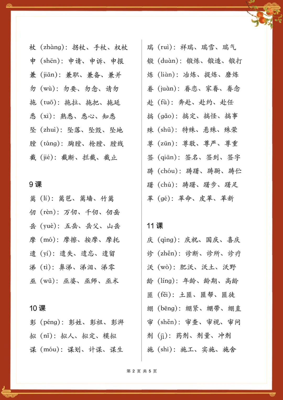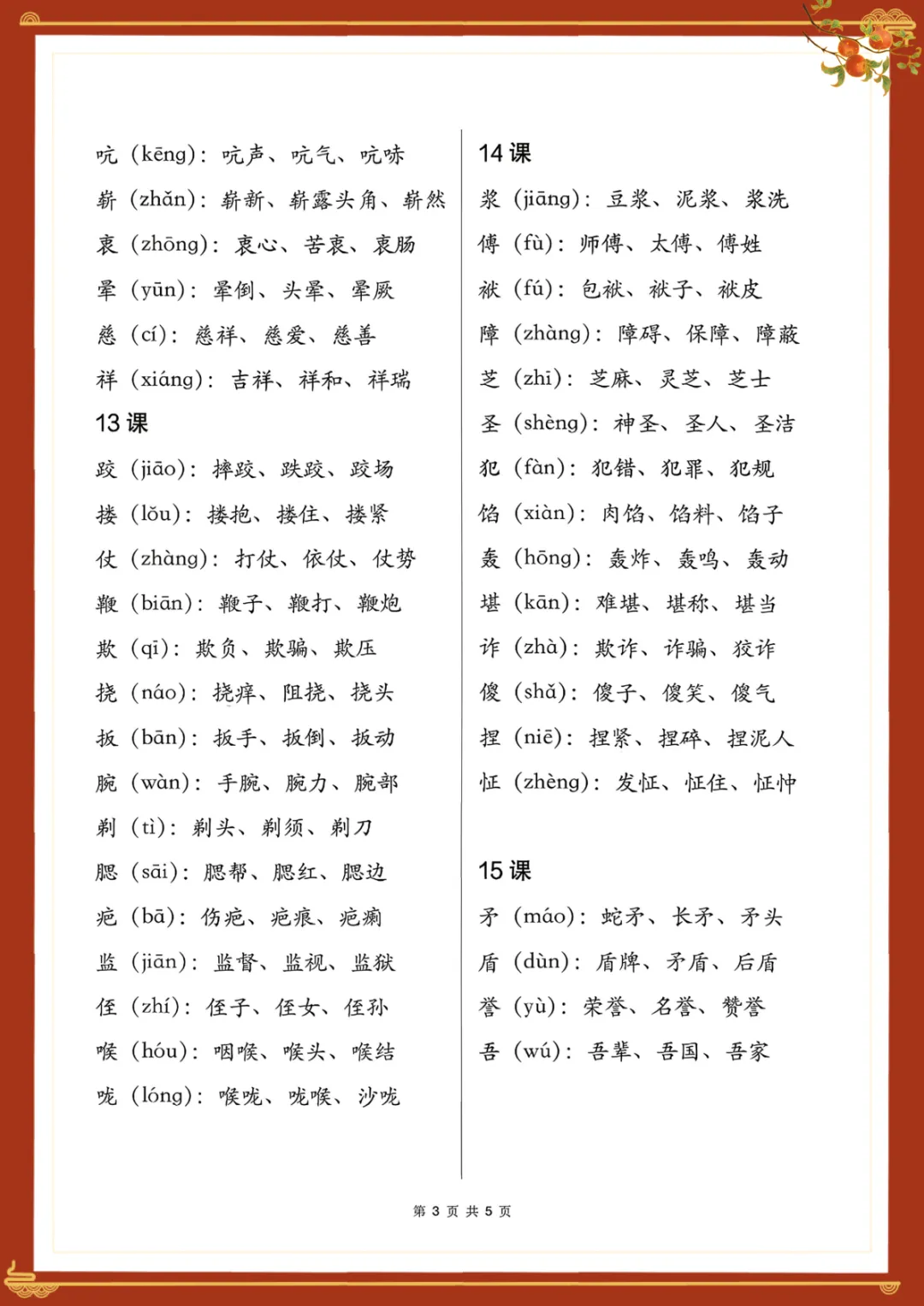 部编版五年级下册语文全册《生字注音及组词》电子版可下载