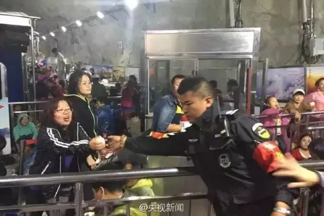 (工作人员在疏导游客)