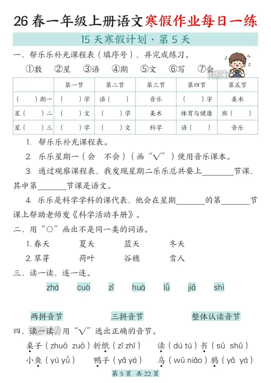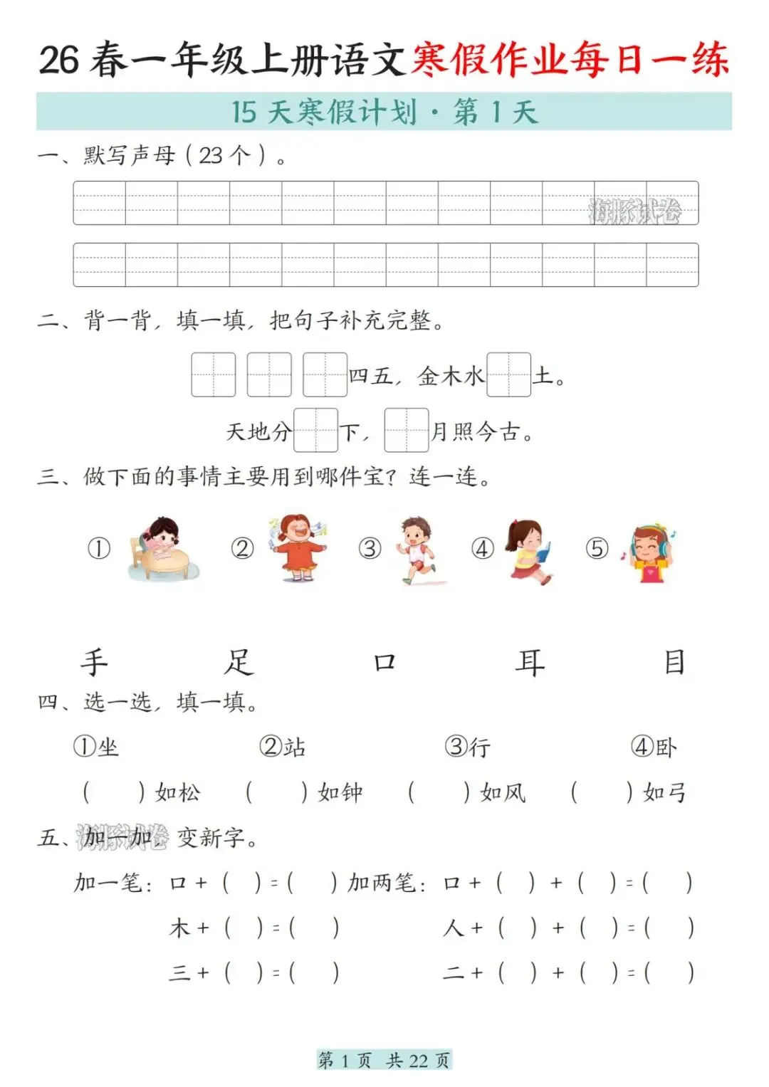 一年级语文上册寒假作业22天 每日一练