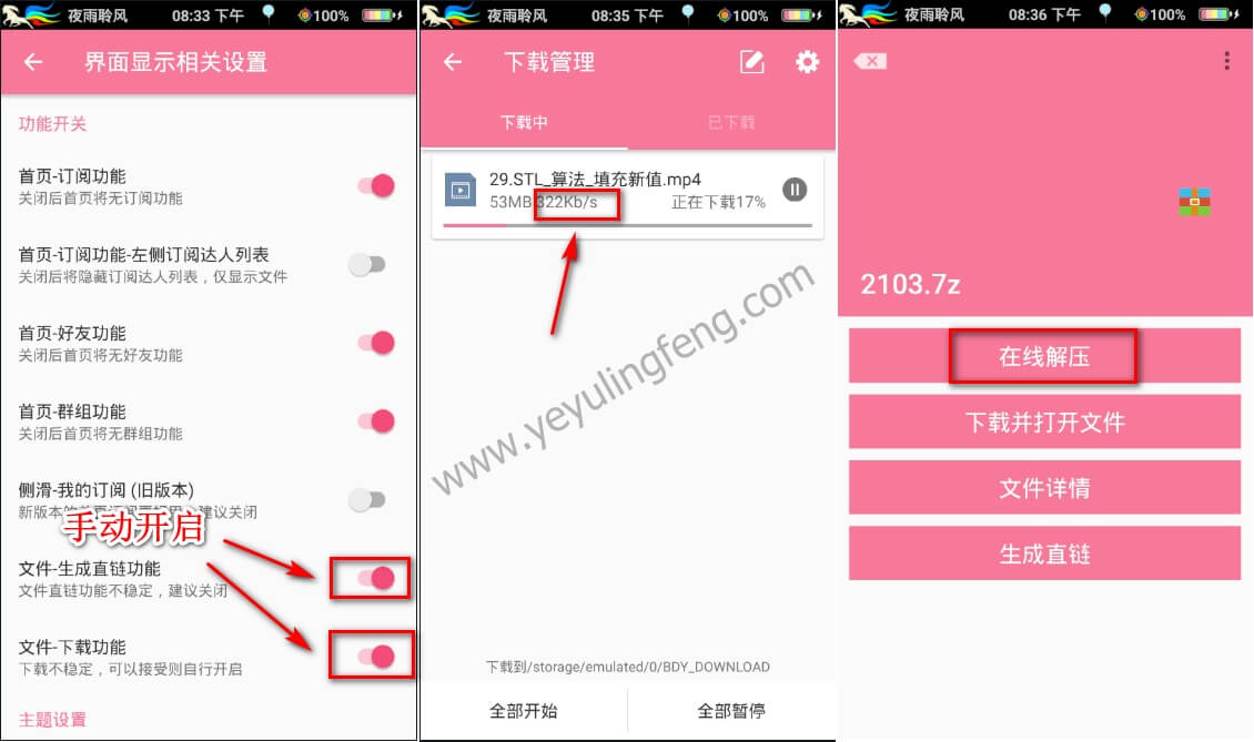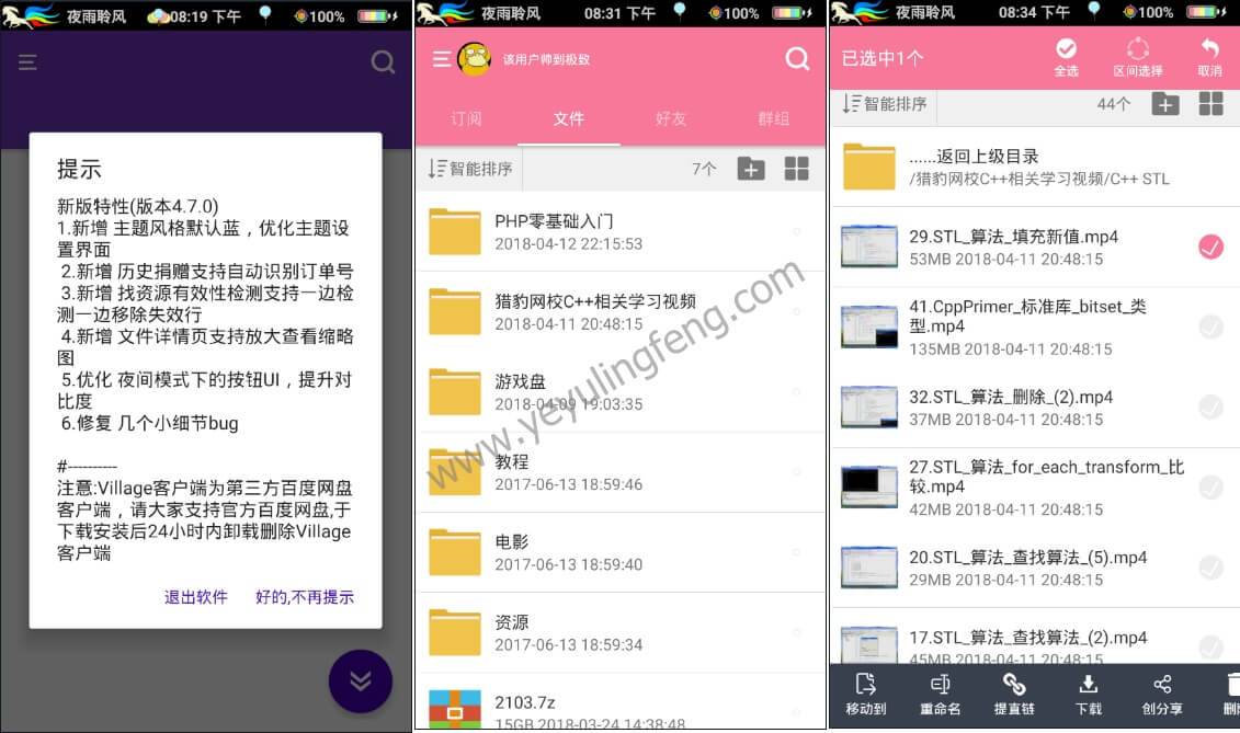 从之前几个版本开始Village为了账号的稳定默认关闭了下载功能,一些小伙伴们都以为Village凉了然而并不是,这里老夜简单的指点一番,大家只需要进入设置选项中找到“界面显示相关设置”后拉到最下面把下载和直链功能手动开启即可,然后返回发现就能下载文件了。新版本的Village已经加入了网盘资源搜索功能,类似于“BT”搜索,只不过换成了云盘资源,搜索出的内容良萎不齐大家谨慎区分对待。如果工具使用不太理想,推荐试试之前老夜在站内分享过的安卓百度云SVIP不限速版本,站内相关的资源文章有很多,大家稍微搜索一下就有了,附上传送门:咻咻咻!