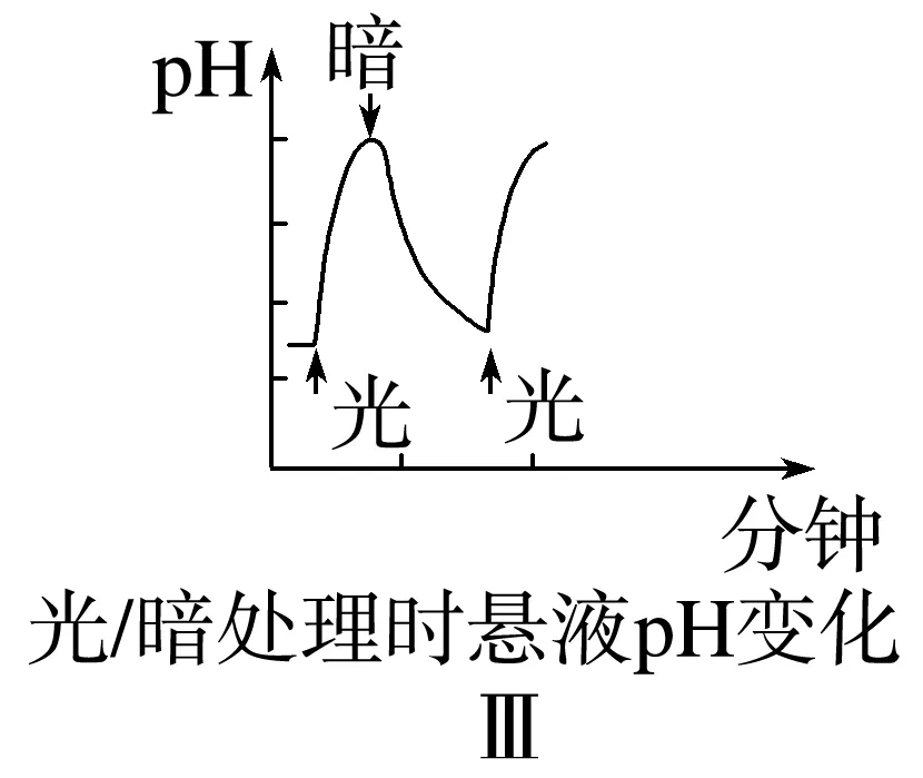 (3)为探究自然条件下类囊体薄膜内外产生H+浓度差的原因,对无缓冲液的类囊体悬液进行光、暗交替处理,结果如图Ⅲ所示,悬液的pH在光照处理时升高,原因是________________________________________________________________________