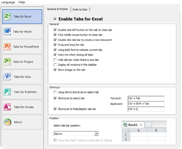 OfficeTab 14.0是我最近发现的一款超实用的Office多标签插件,最新版本已经更新到14.0。它是微软官方发布的office多标签扩展插件,可以为Word、Excel、PowerPoint、Project与Visio等应用添加浏览器式多标签页功能。最让我惊喜的是它可以在单个选项卡式窗口中打开、查看、编辑多个Office文档,每个文档在视窗中以一个标签的形式出现,一键即可进入。软件支持可调节文档标签栏显示位置,可以显示在工作区的上、下、左或者右方,还可以自定义标签栏的颜色。