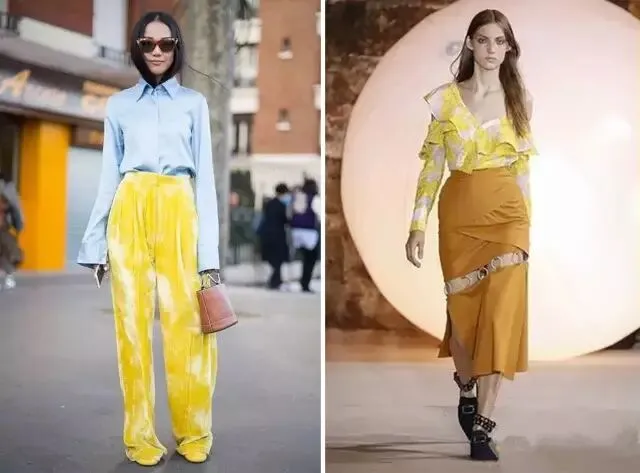 很抢眼的樱草黄,带有光芒和热情的色系,但是大范围单调的使用樱草黄,个人觉得不仅考量衣服的材质和搭配功力,肤色身材也是重要的考量标准。常常被设计师用来搭配第5名的岛屿天堂蓝或第10名的榛果棕。