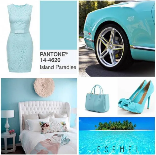 听名字也知道这颜色是源自于海洋中的岛屿,拥有水样的透明质感的海蓝色,介于蓝和绿之间代表著梦想和希望。