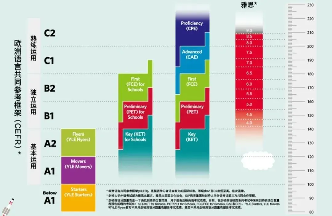 剑桥英语证书是英国剑桥大学英语考评部根据欧洲委员会制定的语言教学大纲设计的英语作为外国语的五个级别系列考试,是继剑桥少儿英语后适用于处于不同阶段英语学习者的国际英语证书。