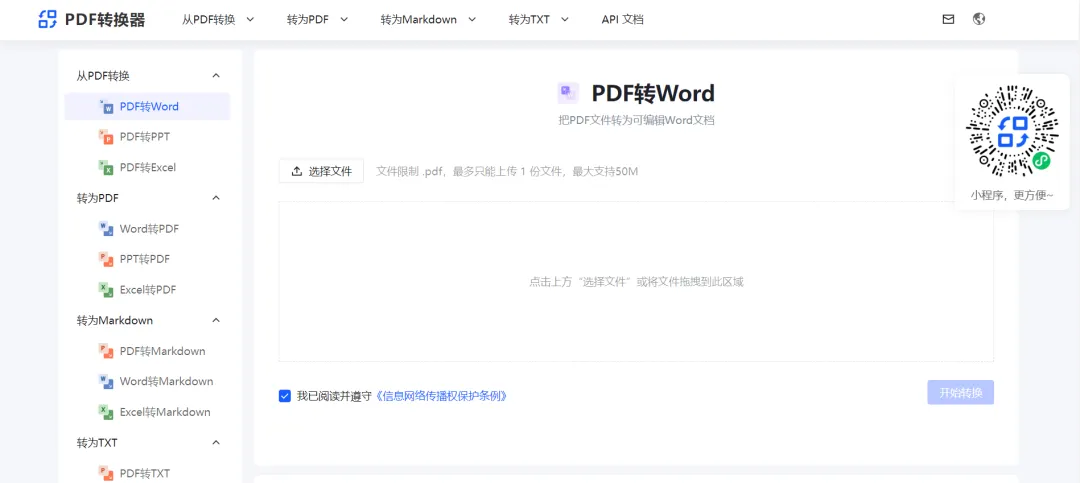 pdf2docx是一个功能丰富的在线PDF转换工具网站,包括:pdf、word、excel、markdown、txt互转等功能