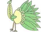 ________找一些绿色的叶子作孔雀的脖子、头和尾巴。
