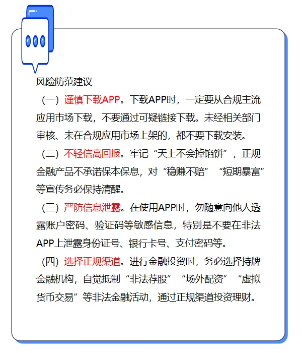 近年来,随着移动互联网的快速发展,各类手机APP层出不穷,一些不法分子以APP为载体,打着“高额回报”“快速致富”等旗号开展非法集资等非法金融活动,诱骗人民群众参与投资,严重危害财产安全。