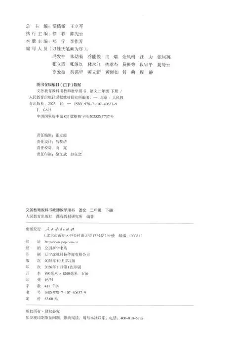 【25秋版26春版】小学人教版(教师教学用书教参)123456年级上下册PDF高清可免费下载打印